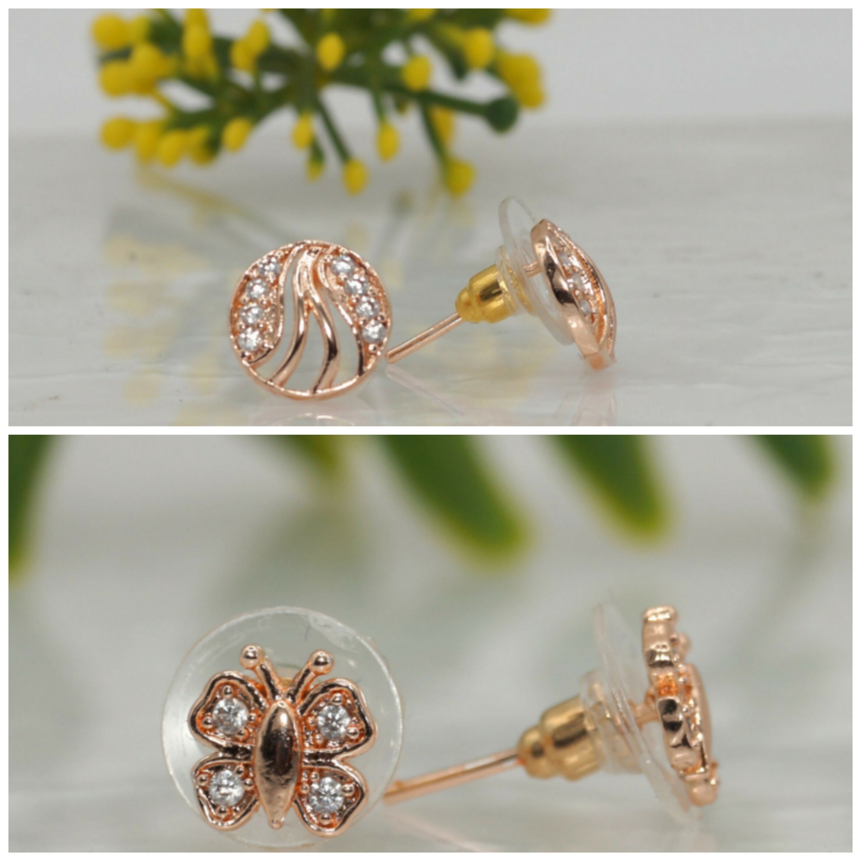 Rose Gold Plated AD Stud Earrings Set (Butterfly & Round) for women and girls Combo Pack of 2