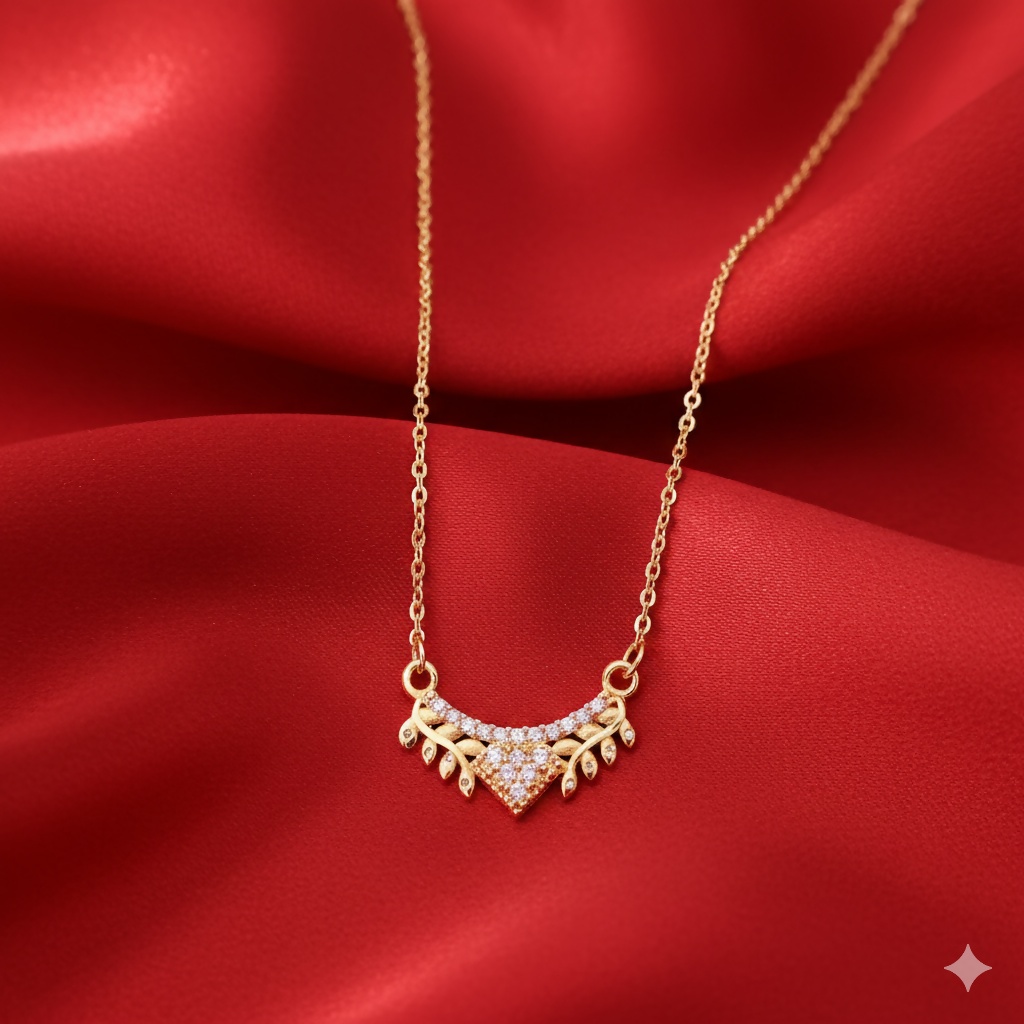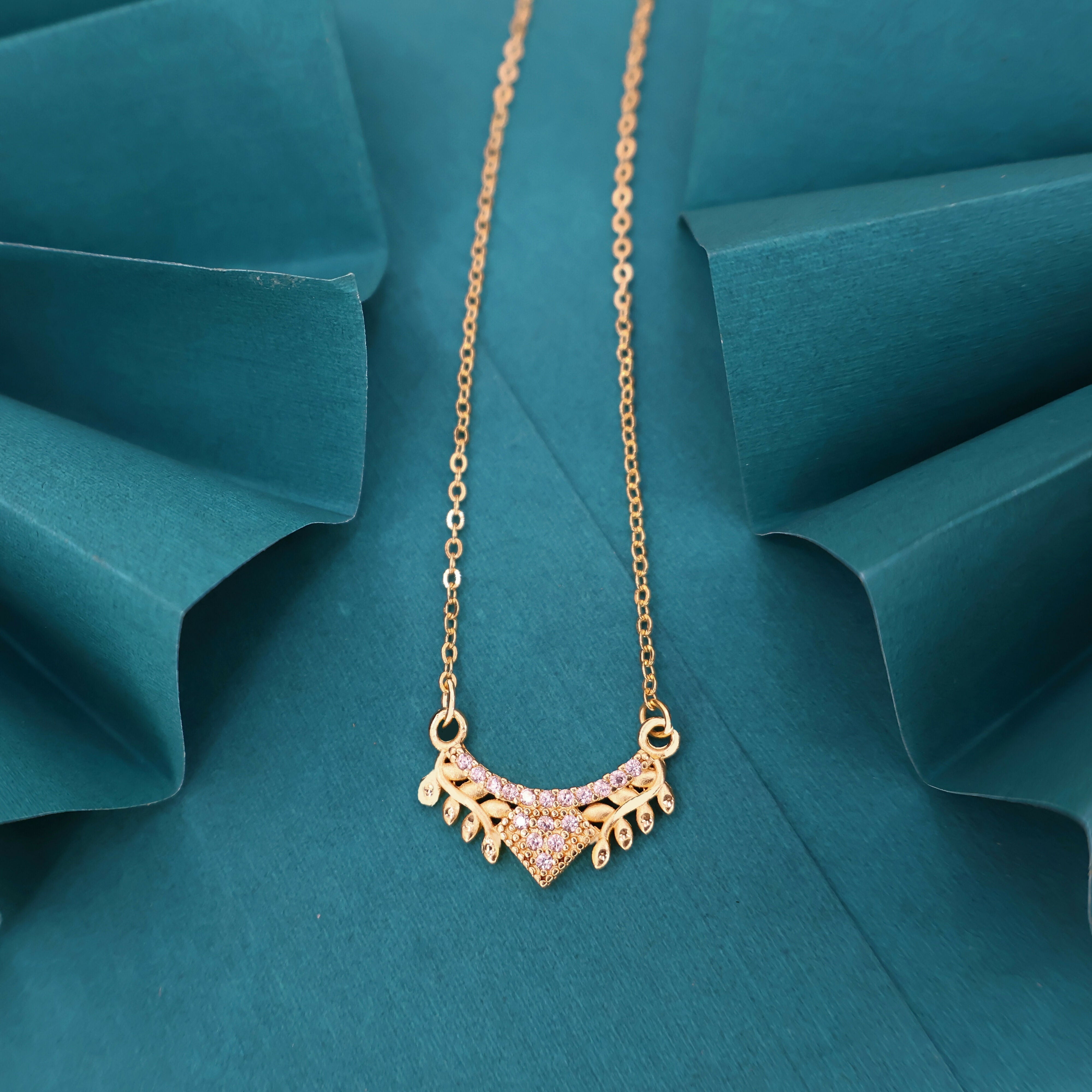 Gold Plated AD V-Shape Leaf Pendant Necklace For women and girls