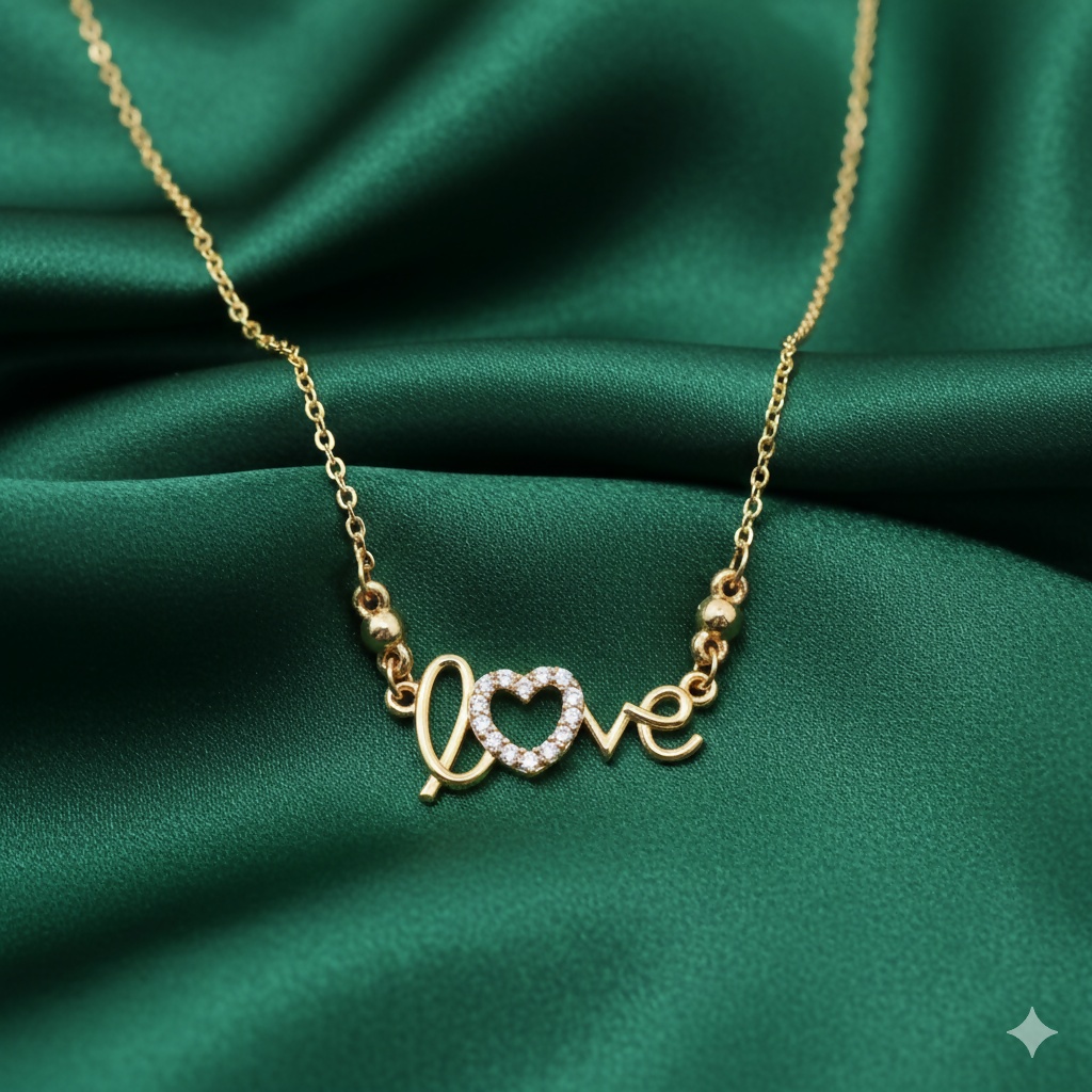 Gold Plated LOVE Heart Necklace AD Pendant For women and girls