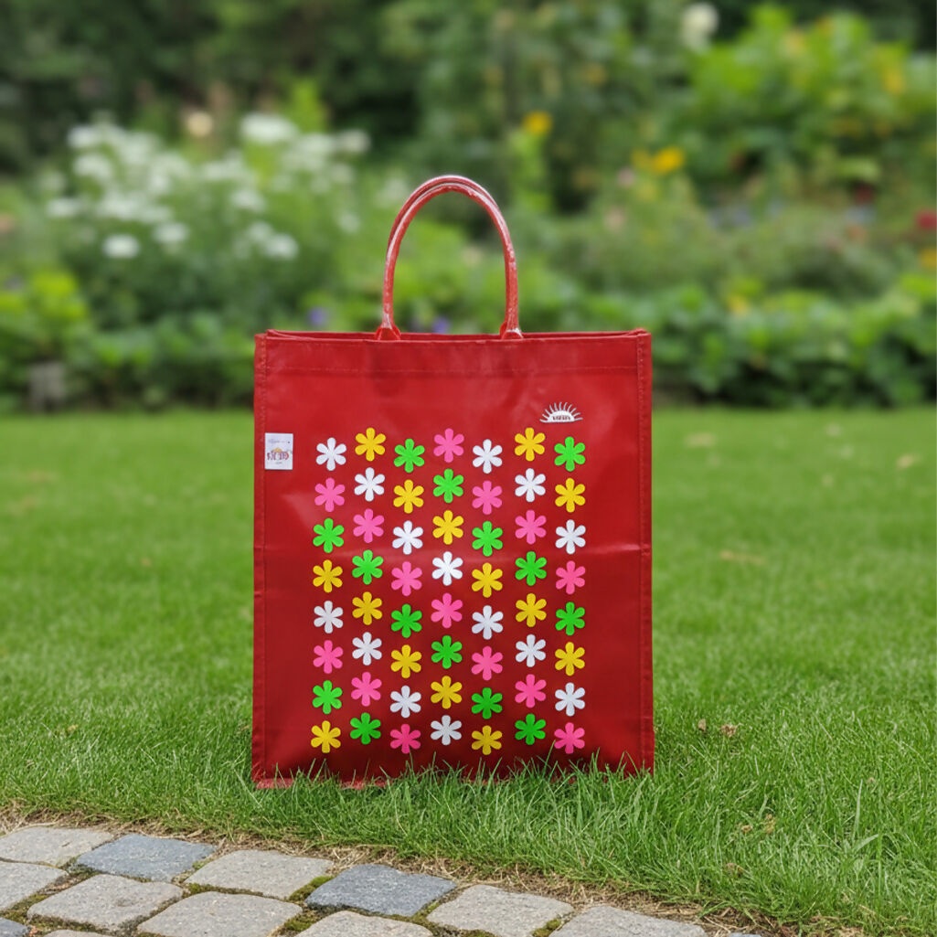 Upgrade your daily shopping with these durable, reusable floral shopping bags, featuring a vibrant multi-color flower print available in red, black, purple, and blue. Made from strong, long-lasting material, each tote bag includes sturdy handles and a spacious interior—perfect for groceries, clothing, travel, or gifting. Lightweight, foldable, and easy to store, these eco-friendly bags combine style, strength, and sustainability for everyday convenience.