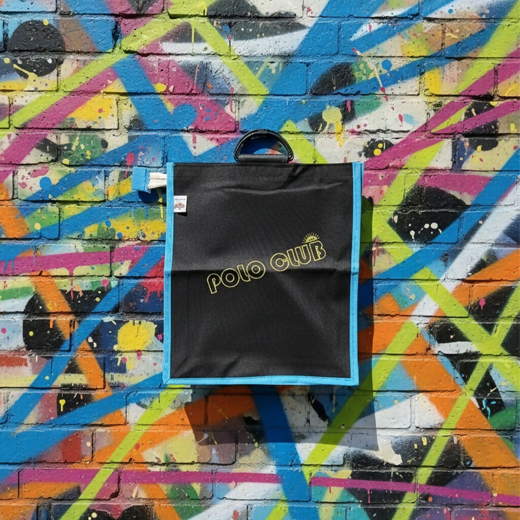 Discover the durable and stylish Polo Club reusable shopping bag featuring a sleek black design, bright blue trim, and a sturdy built-in handle. Perfect for groceries, daily errands, or casual outings, this eco-friendly tote offers reliable storage and a modern look. Ideal for shoppers seeking a lightweight, foldable, and long-lasting bag solution.