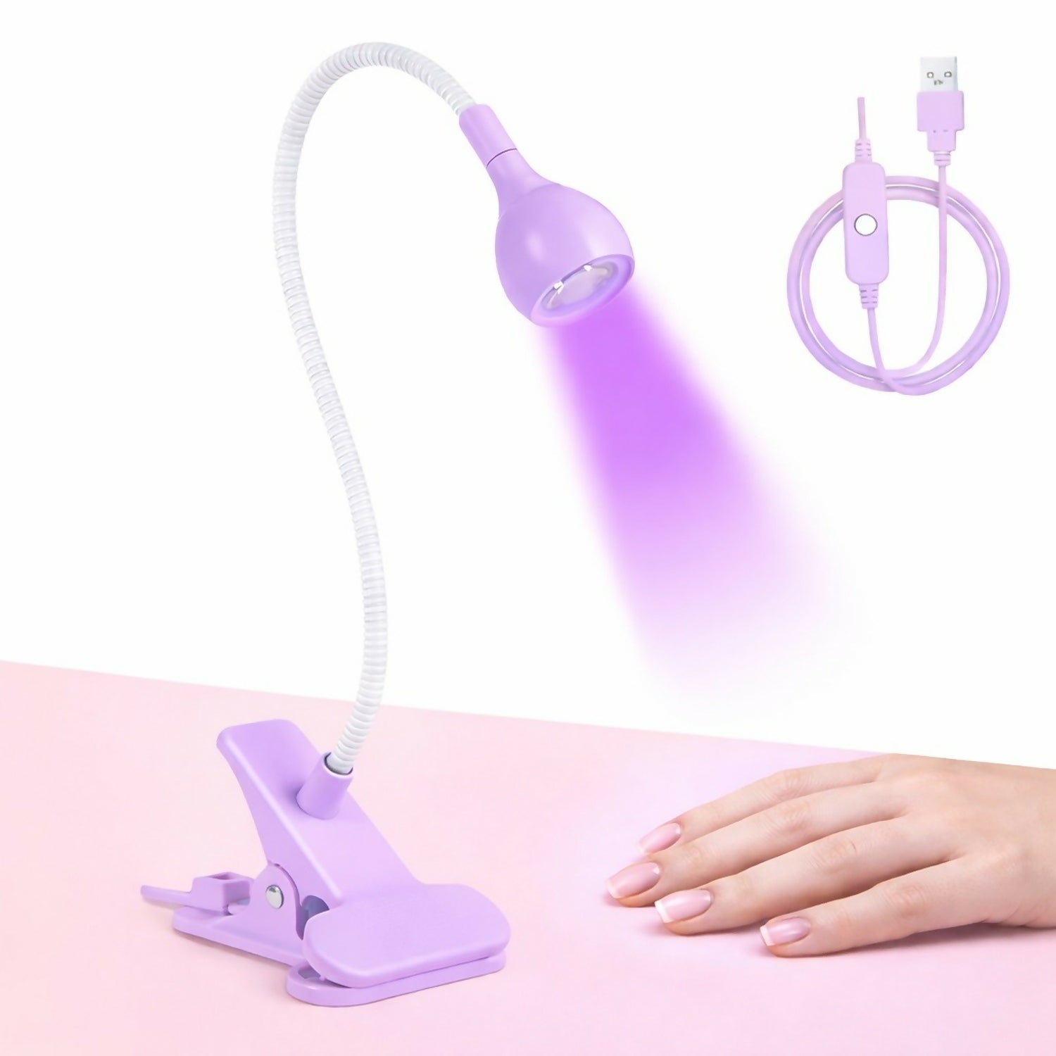 The sturdy clip base provides stable attachment to desks and tables, making it ideal for nail technicians, hobbyists, and DIY users. Powered via USB, it offers versatile usage at home, salons, craft studios, and workstations. Compact, lightweight, and easy to use, this lamp is a practical solution for everyday curing and detailed tasks.
