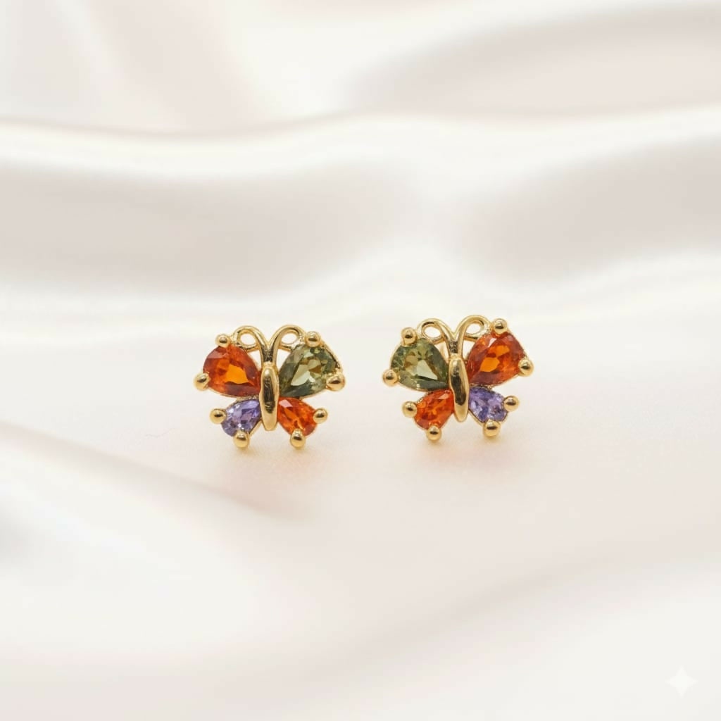 "Gold Plated Multicolored AD Butterfly Stud Earrings" for women and girls