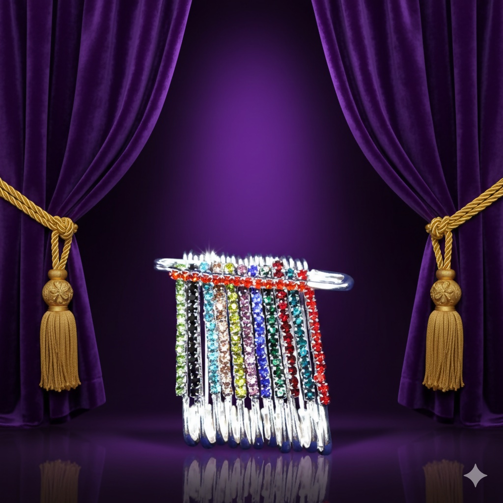 Multicolor Crystal Dangle Saree Pin Brooch - Rainbow Rhinestone Scarf Pin