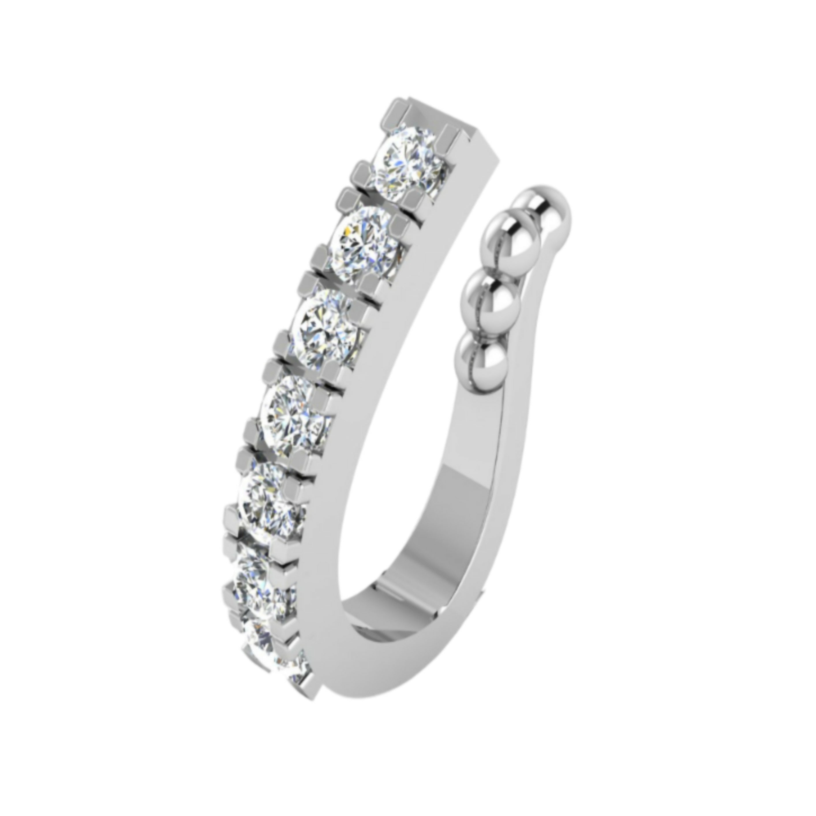 Design: Features a sleek, curved line of brilliant-cut CZ stones set closely together, expertly creating the illusion of a line of small, multiple piercings.