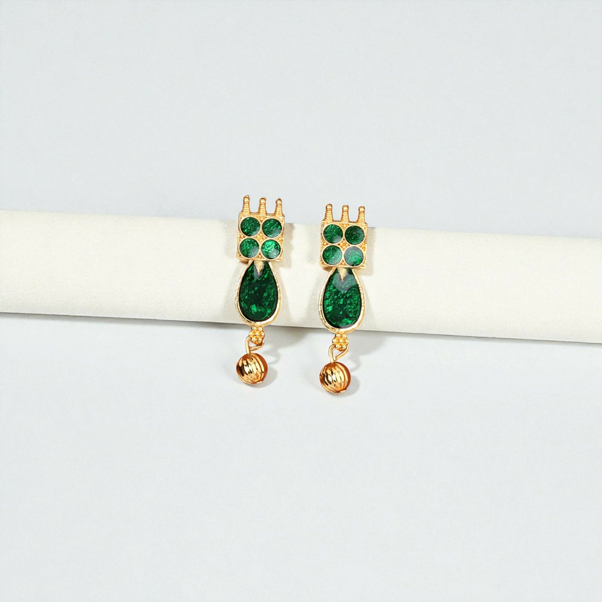 Rose Gold-Tone Bright Green Enamel Leaf Choker with Pearl Drops (Style A)