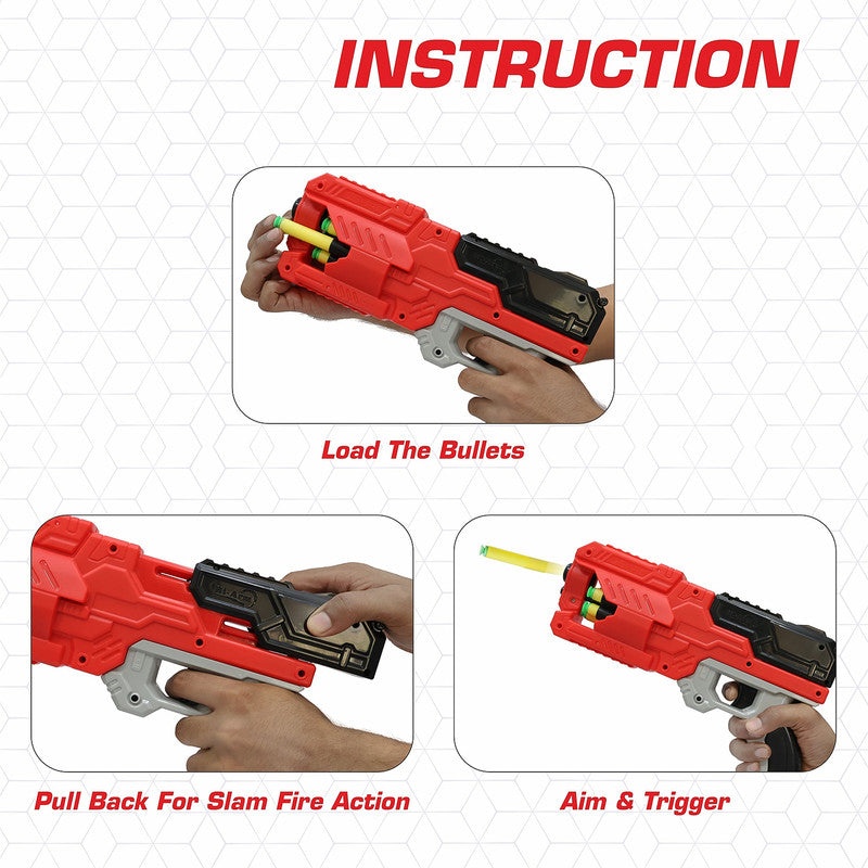 This Aditi slam-fire gun features a 6-dart rotating drum and powerful shooting action that lets kids fire foam darts up to an impressive distance. The pull-back mechanism gives a real action feel, while the sturdy grip ensures easy handling during fast-paced play. Designed with smooth edges and durable build, it offers safe outdoor fun and encourages active movement. Ideal for target practice, friendly battles, and energetic outdoor games.