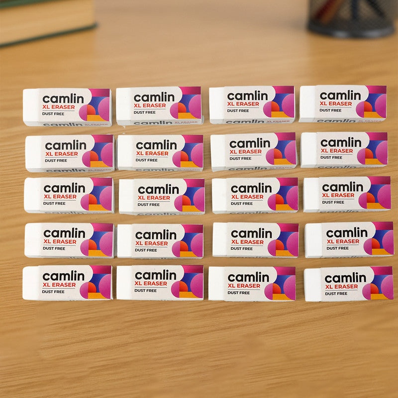 Camlin XL Dust-Free Eraser – Soft, Clean Erasing School & Office | 20-Piece Value