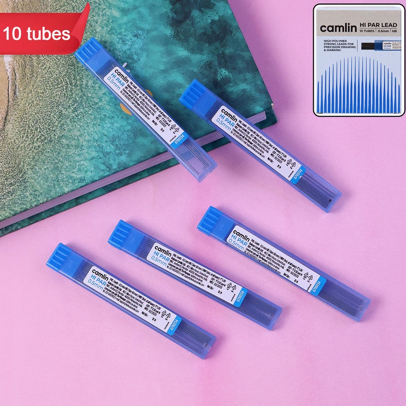 This Camlin Hi-Par 0.5 mm HB Lead Pack includes 10 tubes of high-polymer, break-resistant leads designed for smooth and precise writing. Ideal for mechanical pencils, each tube contains strong, consistent leads that deliver clean lines suitable for notes, drafting, exams, diagrams, and everyday writing. The HB grade provides the perfect balance between dark marking and durability, making it a dependable choice for students, offices and professionals who require reliable pencil performance throughout the day.