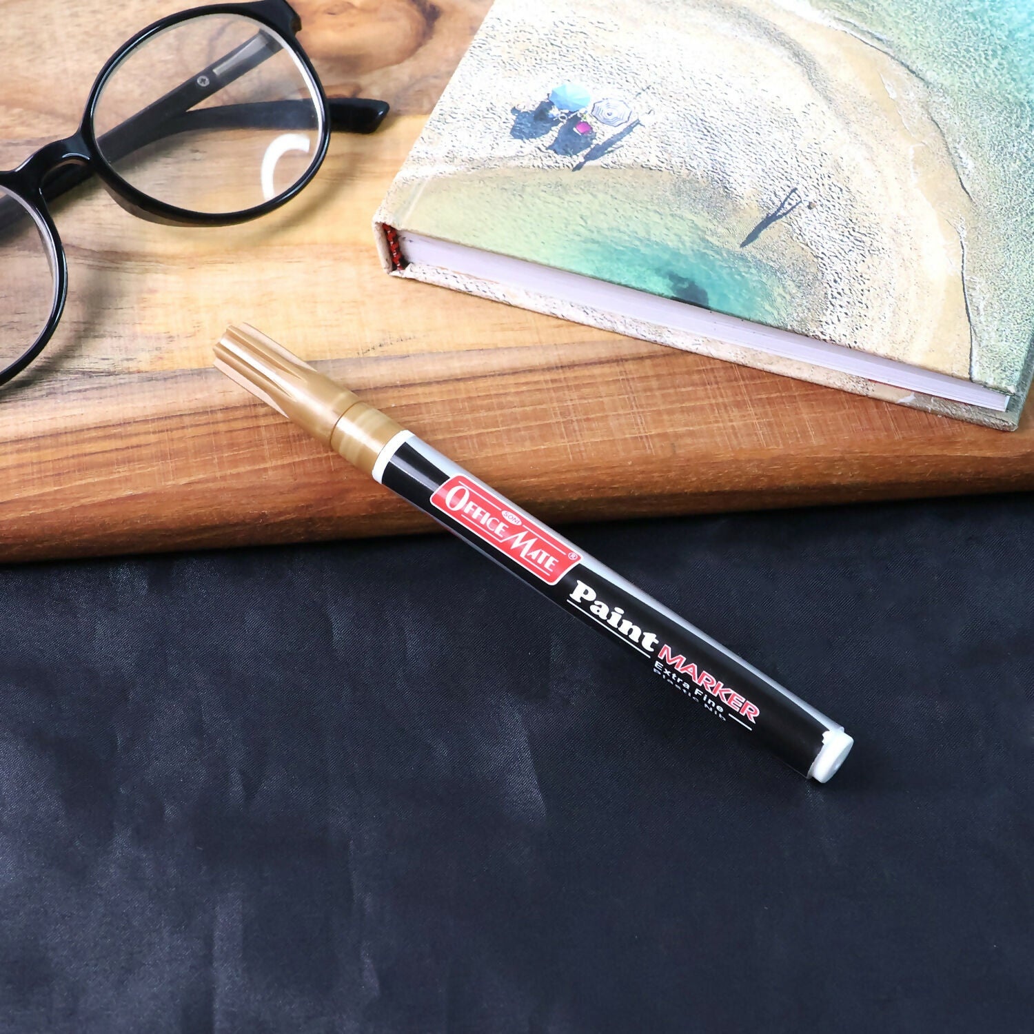 The Officemate Paint Marker with extra fine plastic nib is specially designed for smooth and precise writing. Unlike permanent markers, this marker is safe for paper-based usage, ensuring clear and sharp markings without bleeding. Ideal for crafts, school projects, creative writing, and decorative purposes, it gives a neat metallic gold finish that enhances creativity. Perfect for students, professionals, and artists looking for fine detailing in their work.