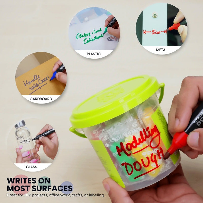 The Permanent Marker Pen Set is designed for everyday writing, labeling, and creative applications. Each pen features a bold, quick-drying ink that writes smoothly on almost any surface, including cardboard, metal, plastic, wood, and glass. The refillable design ensures long-term use, while the xylene-free and non-toxic ink makes it safe for office, school, or home environments. This multi-color set brings both function and creativity to your workspace, making it perfect for professionals, students, and artists alike.