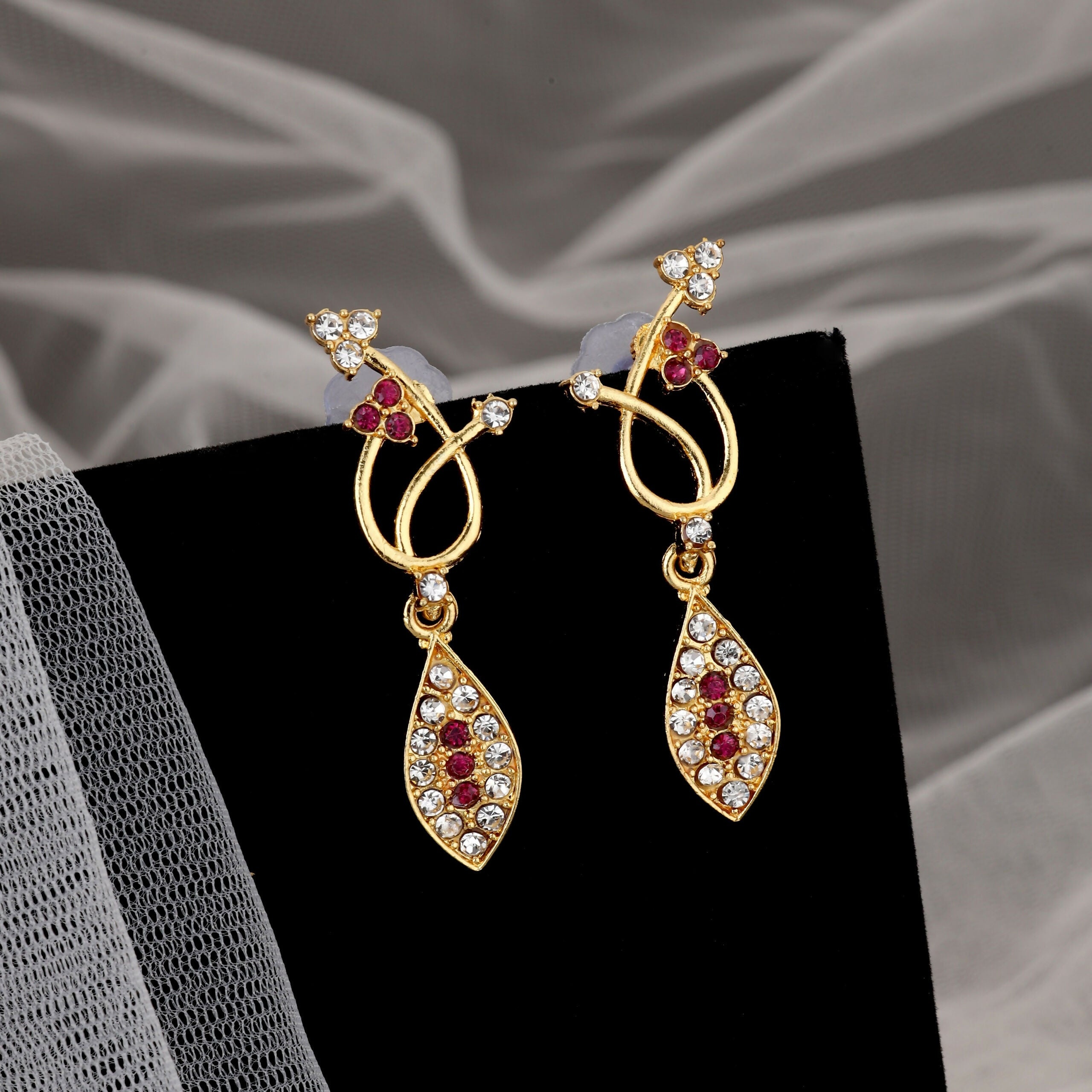 This appealing set features a choker necklace and matching stud earrings with an gold-toned finish. The choker is a continuous band of bold, bezel-set rectangular emerald green simulated gemstones. The bottom edge is accented with small silver-toned daisy or floral motifs, each featuring a tiny green stone. Secured by a traditional pink thread (dori), this set offers a rich, bohemian, or tribal aesthetic, ideal for traditional or Indo-Western outfits.