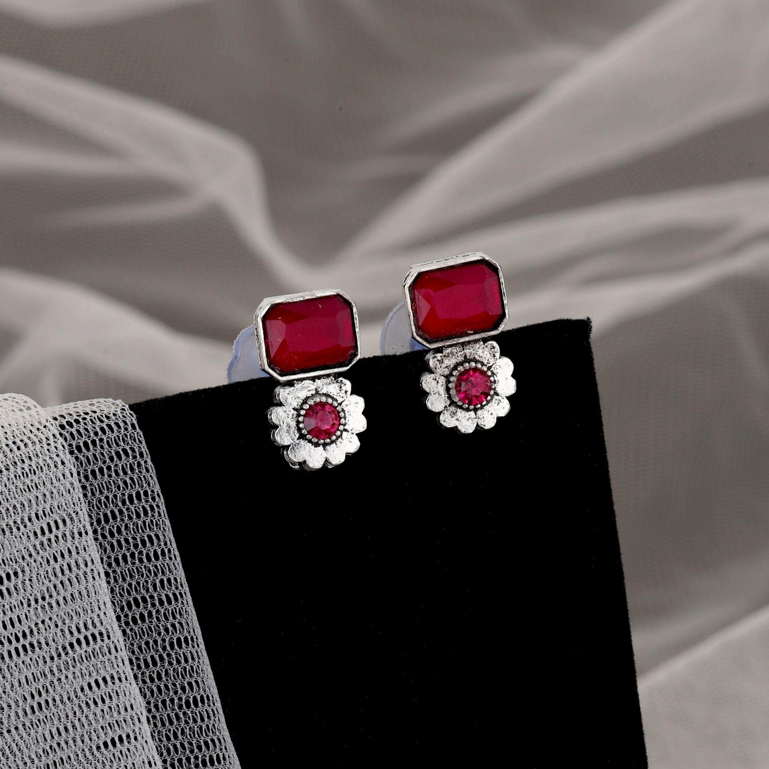 Vintage Silver-Toned Choker Set with Ruby Pink Stones