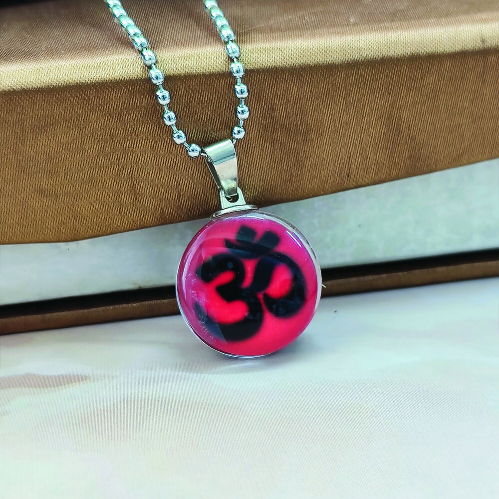 This Glass Framed Orange Enamel Om Locket Chain Pendant features a striking orange enamel Om symbol, expertly encased within a clear glass frame for enhanced durability and visual appeal. The pendant is suspended from a robust chain, offering a harmonious blend of spiritual significance and contemporary design. Perfect for those who appreciate meaningful jewelry that combines tradition with lasting quality.