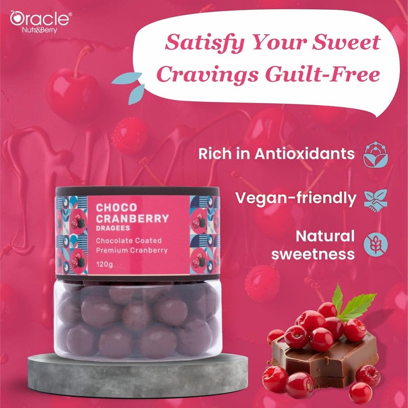 Oracle Choco Cranberry Dragees Chocolate Coated Premium Cranberries (120gm)