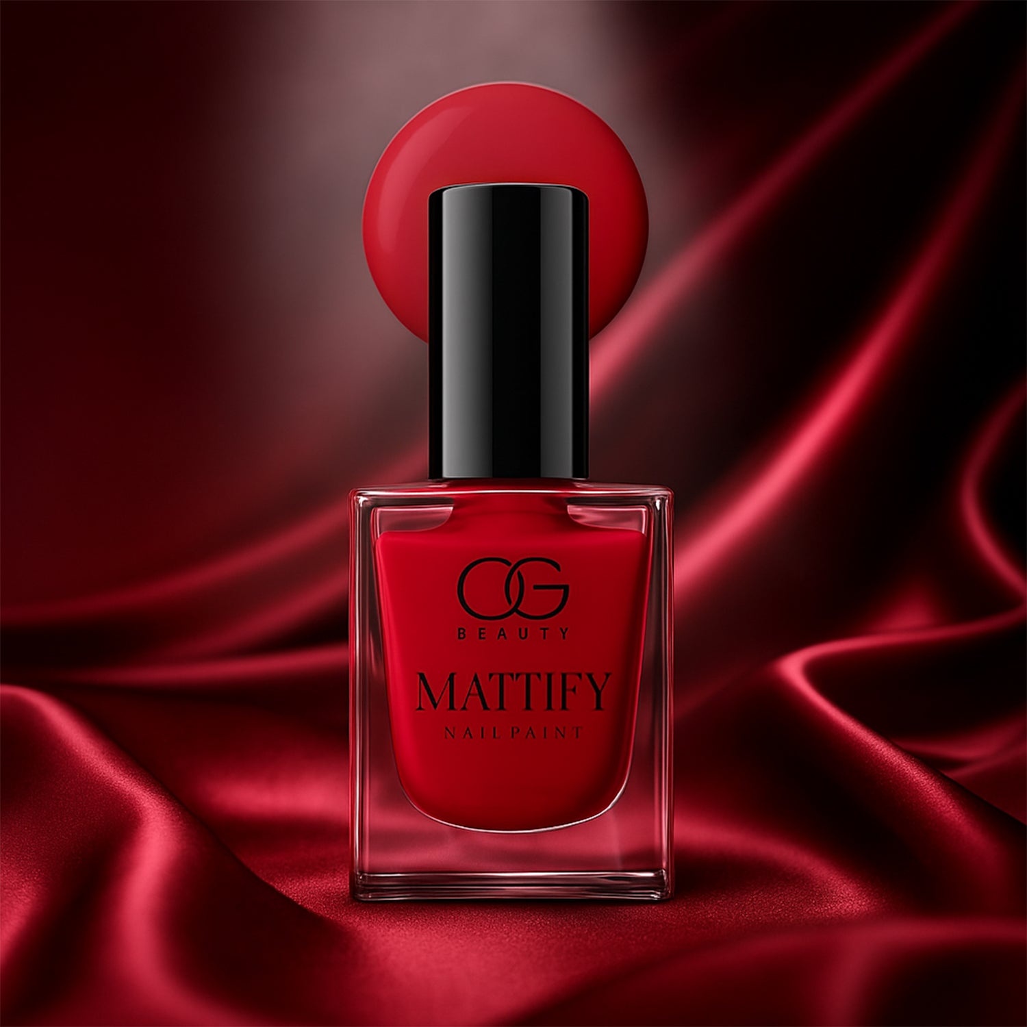 OG Beauty Red Carnival Mattify Nail Paint 10 ML – Long Lasting Quick Dry Matte Finish Nail Polish for Elegant and Stylish Nails