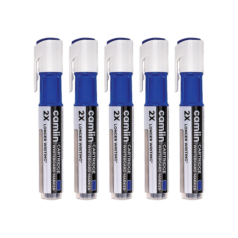 The Camlin Cartridge Whiteboard Marker in Blue color offers smooth, bold, and long-lasting writing performance with the convenience of an ink cartridge system. This pack of 5 markers ensures 2X longer writing compared to regular whiteboard markers, making them highly efficient and cost-effective. The quick-drying ink provides sharp and clear markings that are easy to erase without leaving stains or ghost marks, ensuring a clean whiteboard every time. Designed with a durable tip for consistent ink flow and bold visibility, these refillable markers are eco-friendly and reduce wastage by allowing cartridge replacements instead of discarding the entire marker. Perfect for classrooms, offices, training centers, and professional presentations, the Camlin Cartridge Whiteboard Markers combine reliability, convenience, and durability for seamless everyday use.