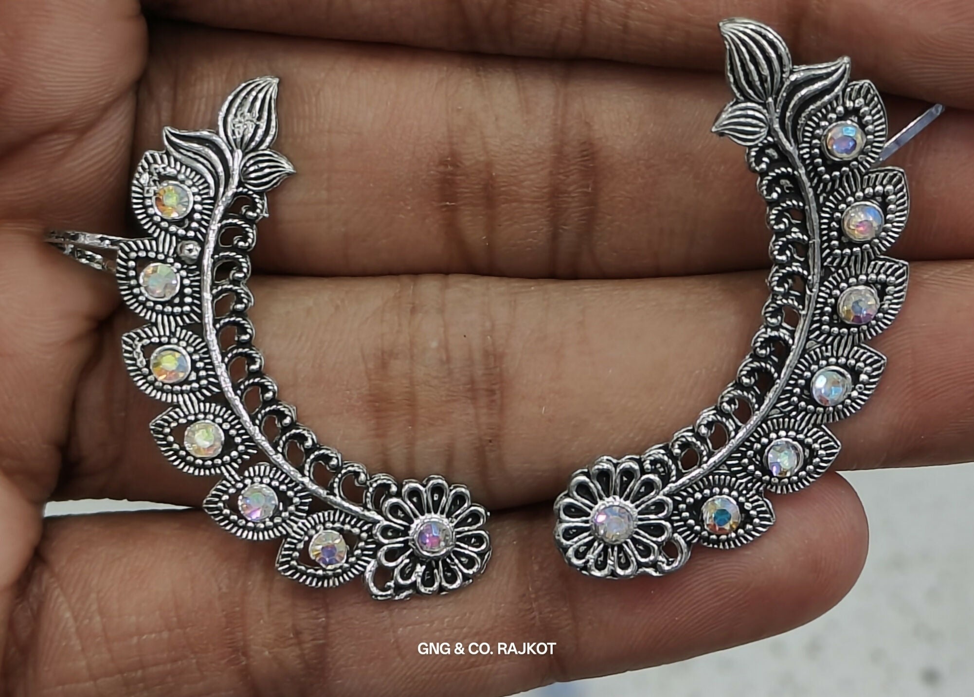Silver Oxodised Ear Cuff Design percently design for traditional look.