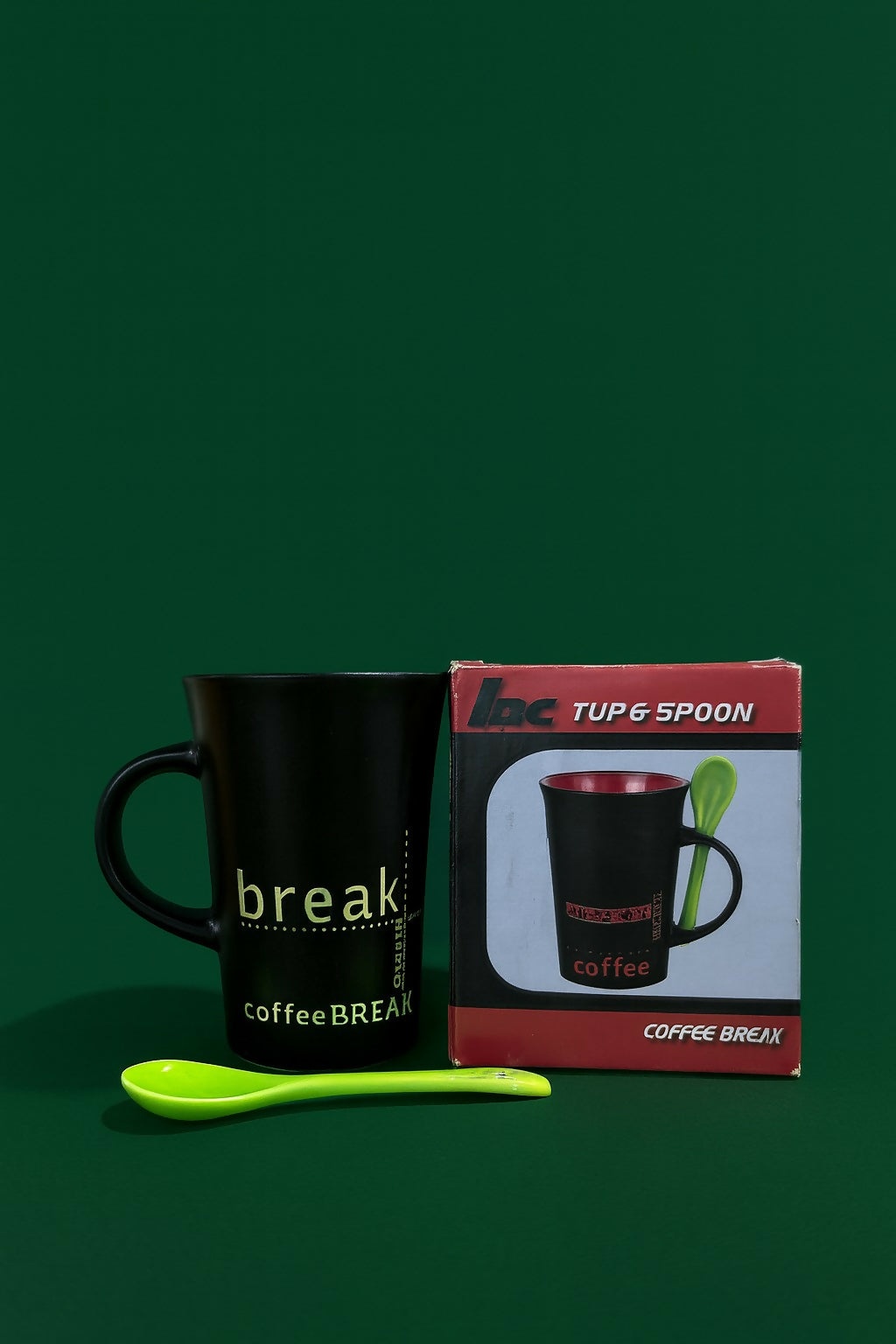 Black coffee mug with spoon, ceramic coffee mug, coffee break mug, stylish tea coffee cup, black ceramic mug with green spoon, printed coffee mug, coffee mug for office desk, microwave safe mug, dishwasher safe mug, modern coffee mug, daily use coffee mug, coffee mug gift, ceramic drinkware, coffee tea milk cup, unique coffee mug for men and women.