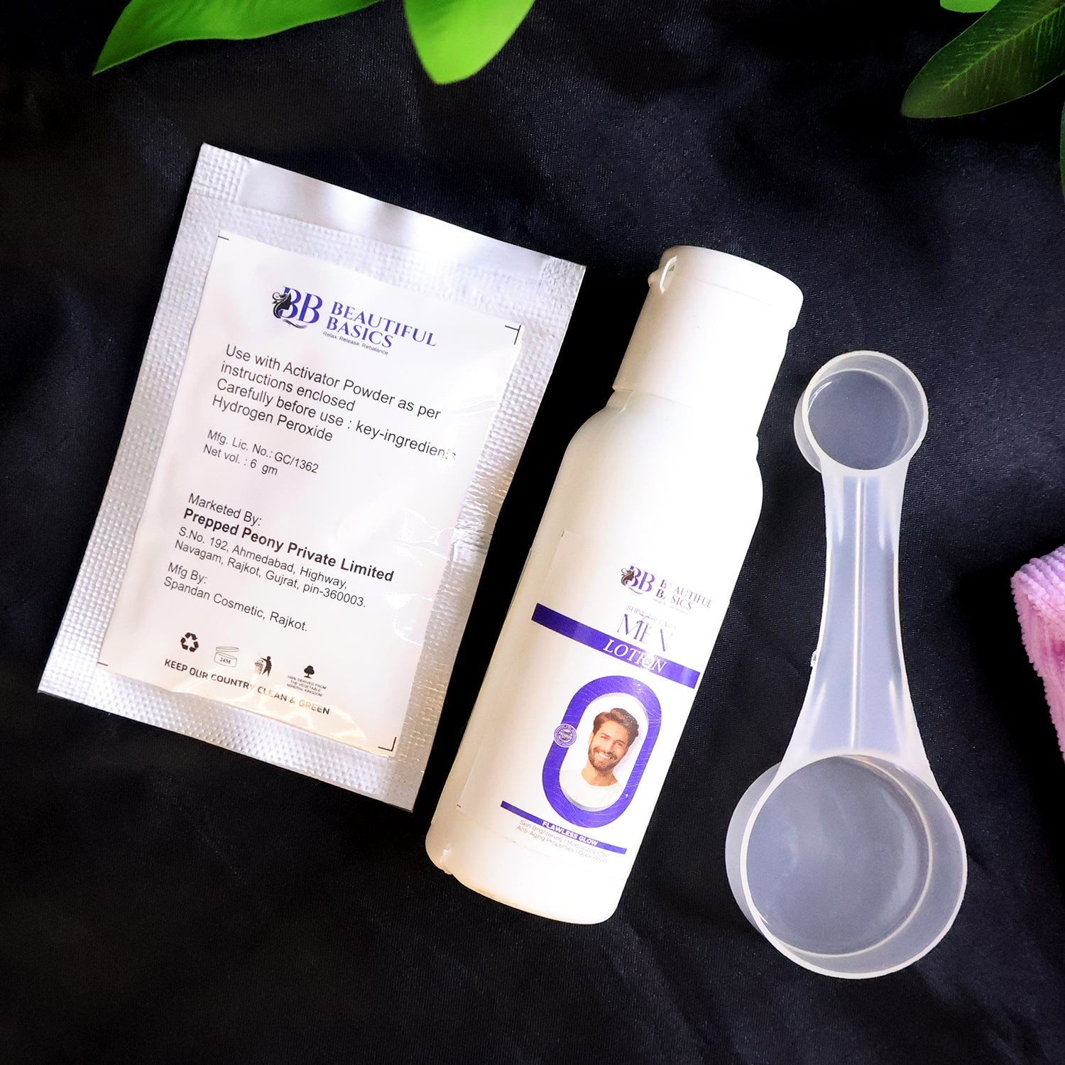 Beautiful Basics Men’s Simple Bleach Cream Kit – Complete Skin Lightening and Brightening Set with Lotion, Activator Powder & Mixing Tray – 1 Set