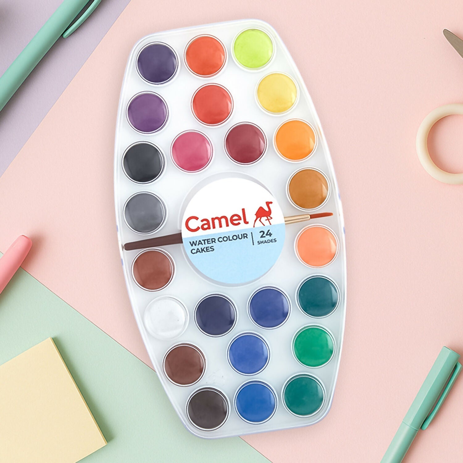 Camel Water Colour Cakes – 24 Shades Oval Palette with Brush
