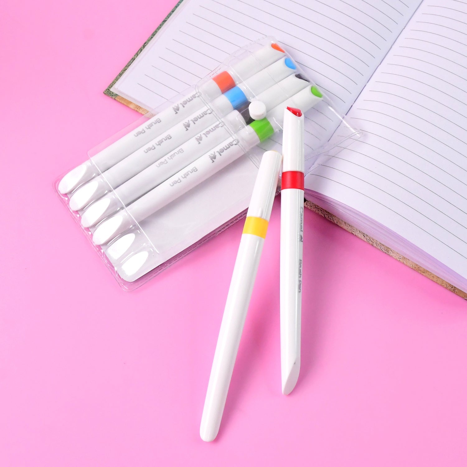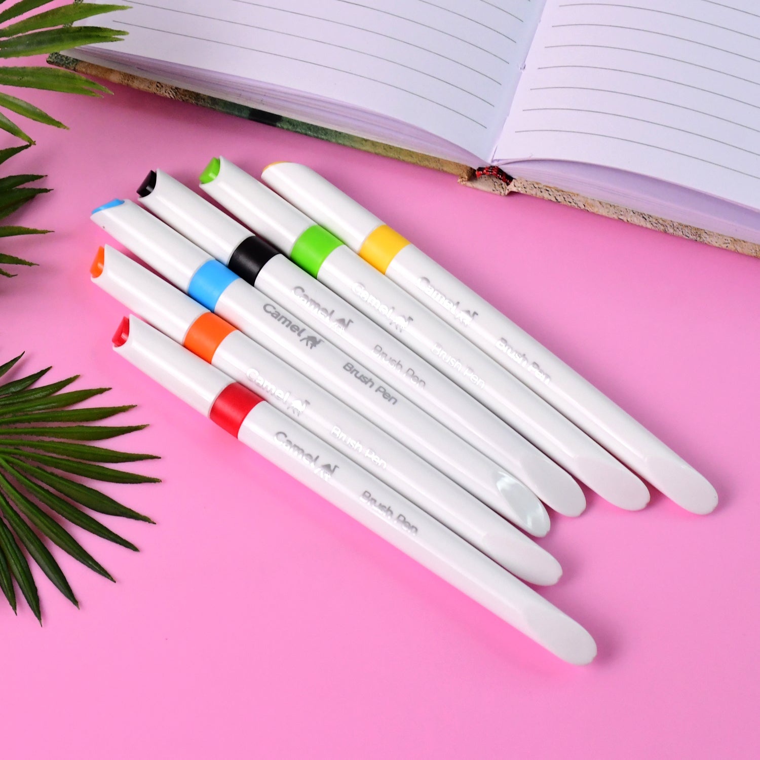 Camel Brush Pens – 6 Vibrant Shades (Flexible Tip for Watercolor, Lettering & Sketching)