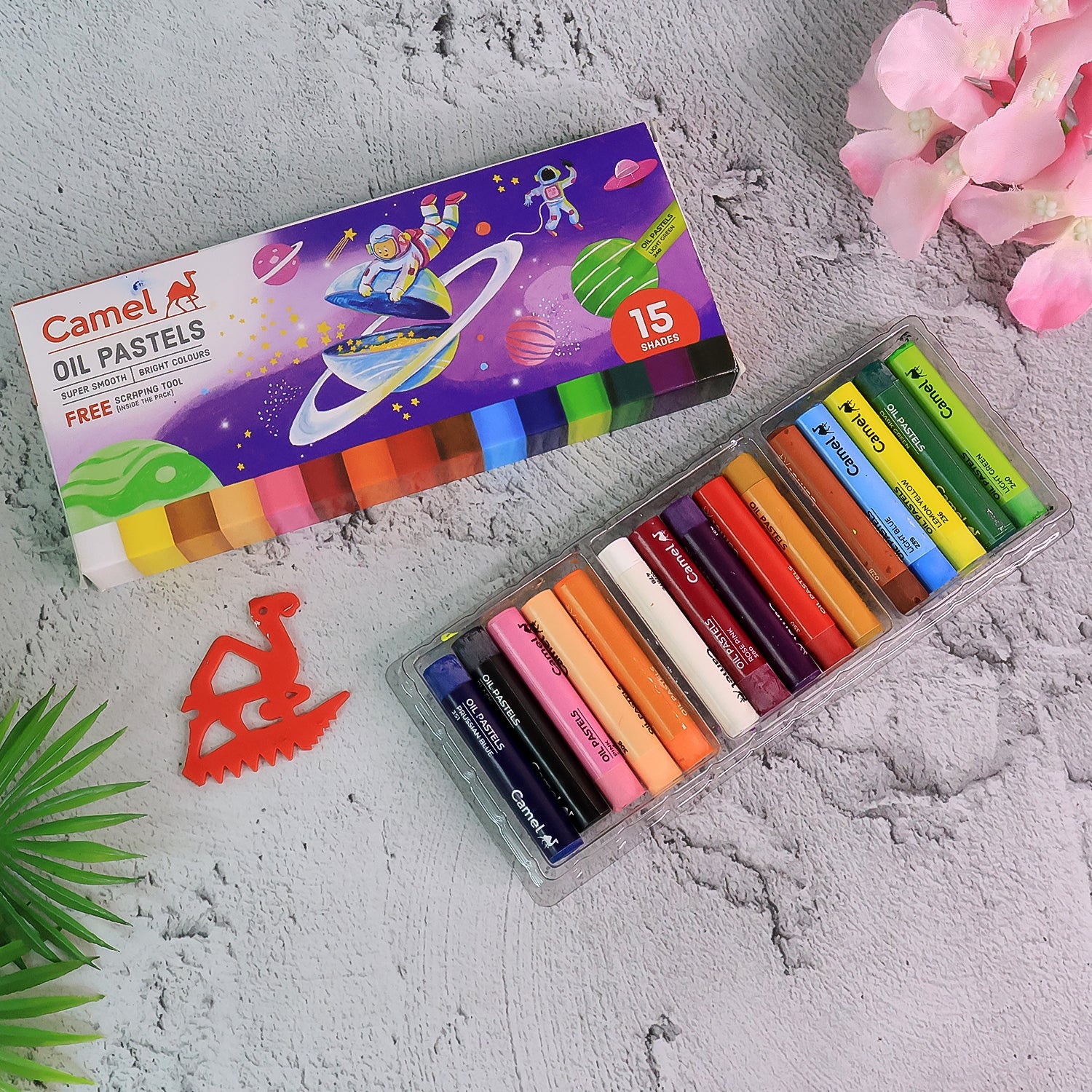 Camel Oil Pastels – 15 Rich & Smooth Shades with Free Scraping Tool