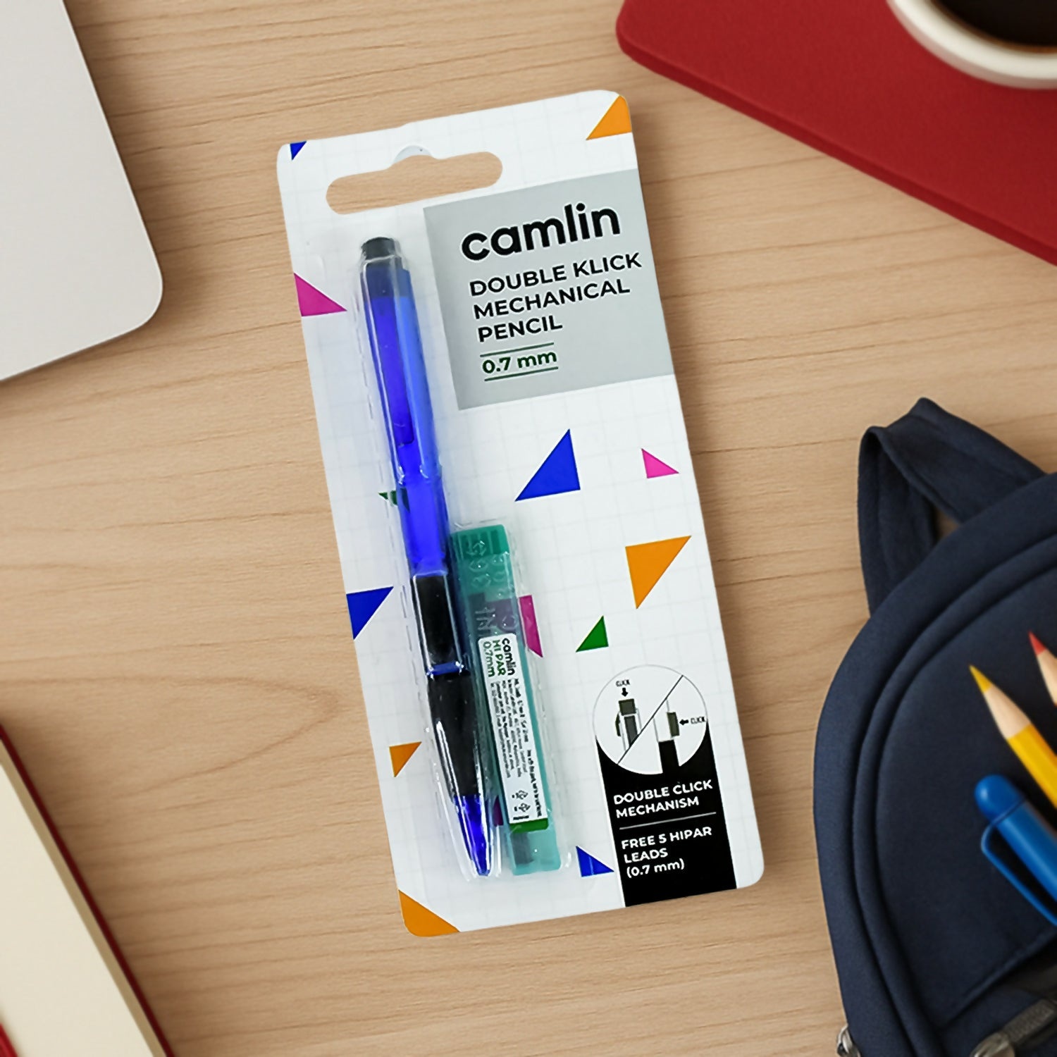 The Camlin Double Klick Mechanical Pencil is designed for smooth and precise writing with its 0.7mm fine tip. Featuring an innovative double click mechanism, this pencil allows quick and easy lead advancement for uninterrupted use. The ergonomic grip ensures comfortable writing, making it ideal for students, professionals, and creative tasks. This set includes free Hi-Par 0.7mm leads for long-lasting performance, ensuring a consistent and sharp writing experience.