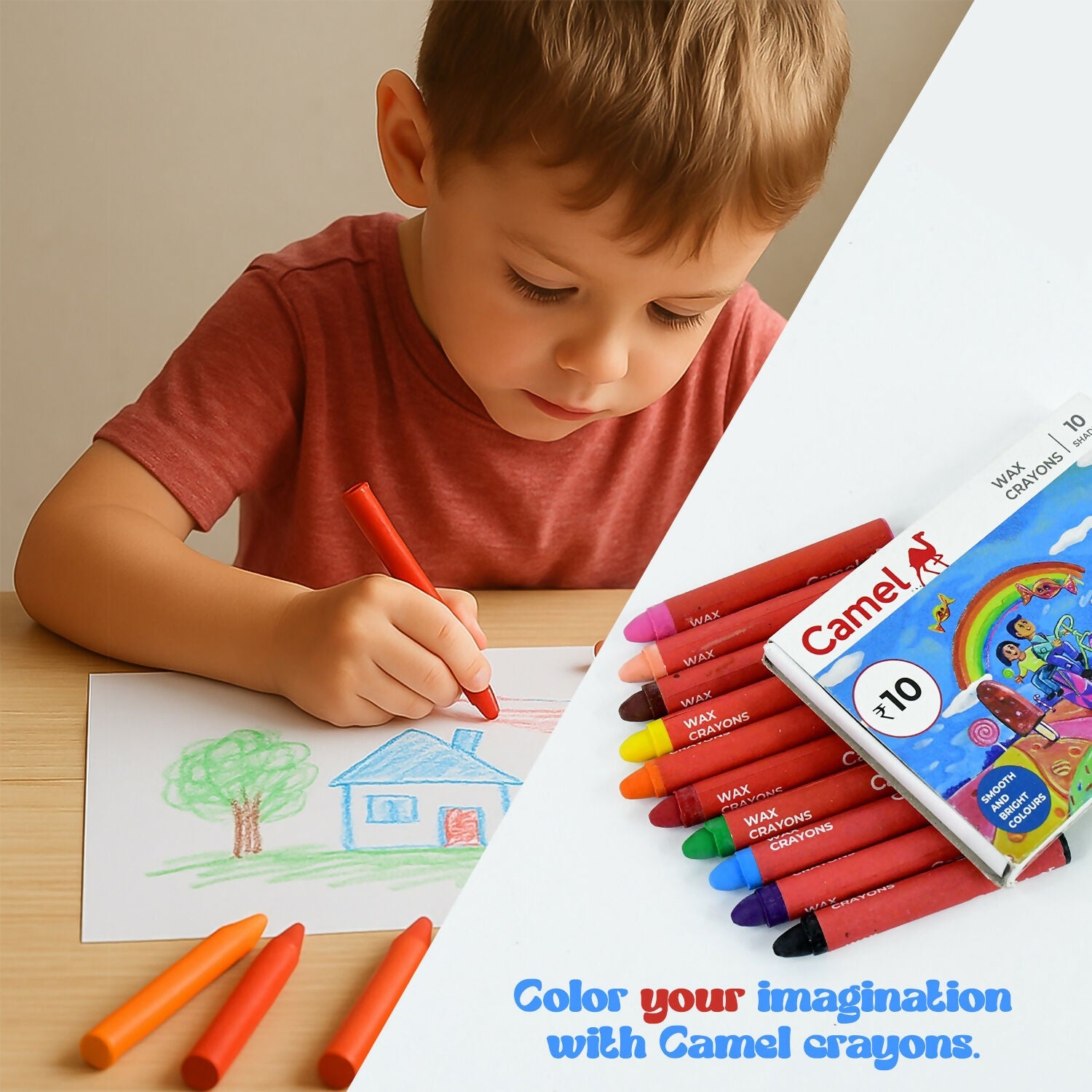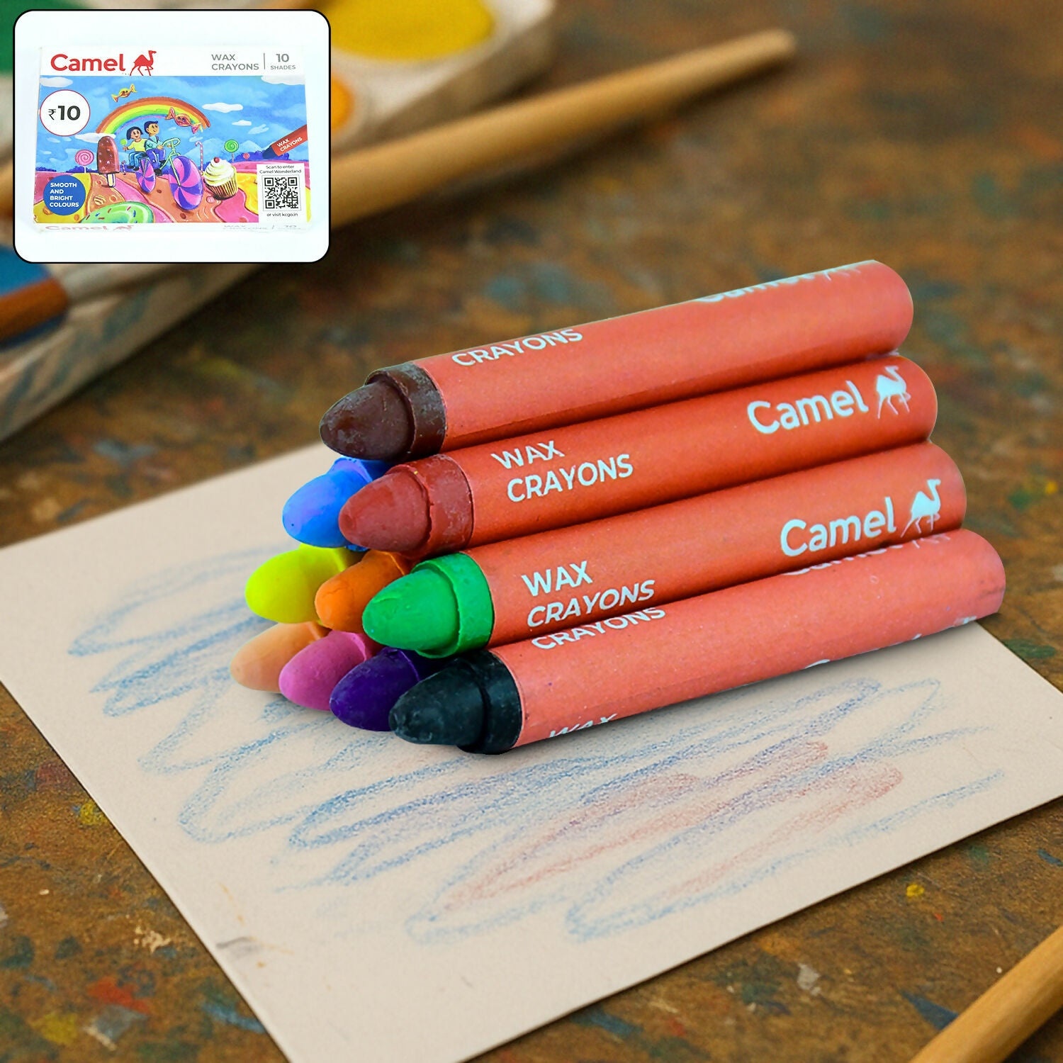 Camel Wax Crayons – 10 Bright Shades Smooth and Easy Colouring Crayons for Kids and Students