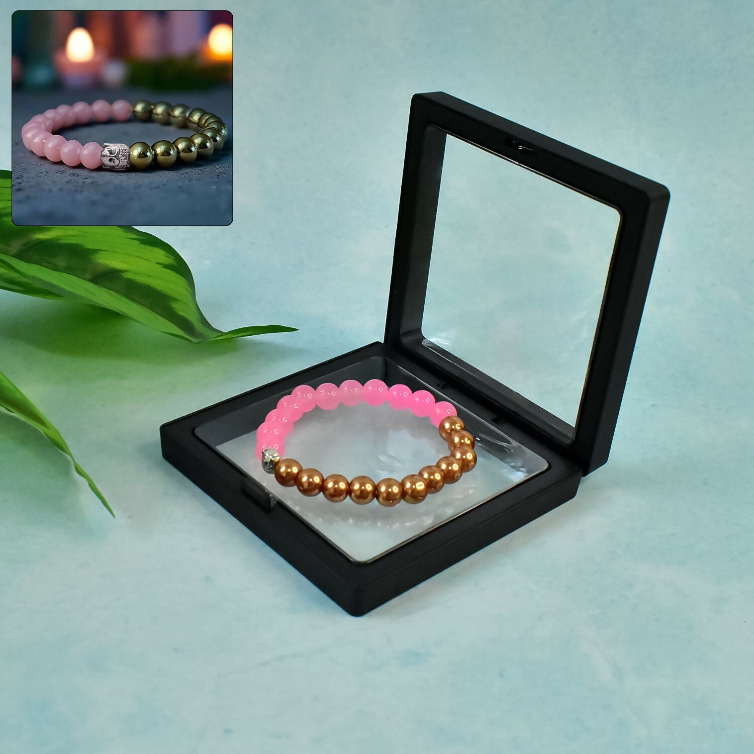 Dual-Tone Pink & Gold Beaded Bracelet in Elegant Display Case