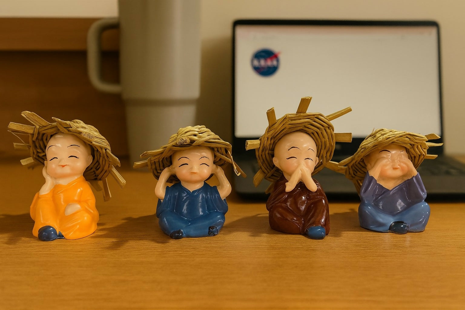 🧘 Set of 4 Mini Monk Showpieces – Hear, See, Speak, and Think No Evil themed poses