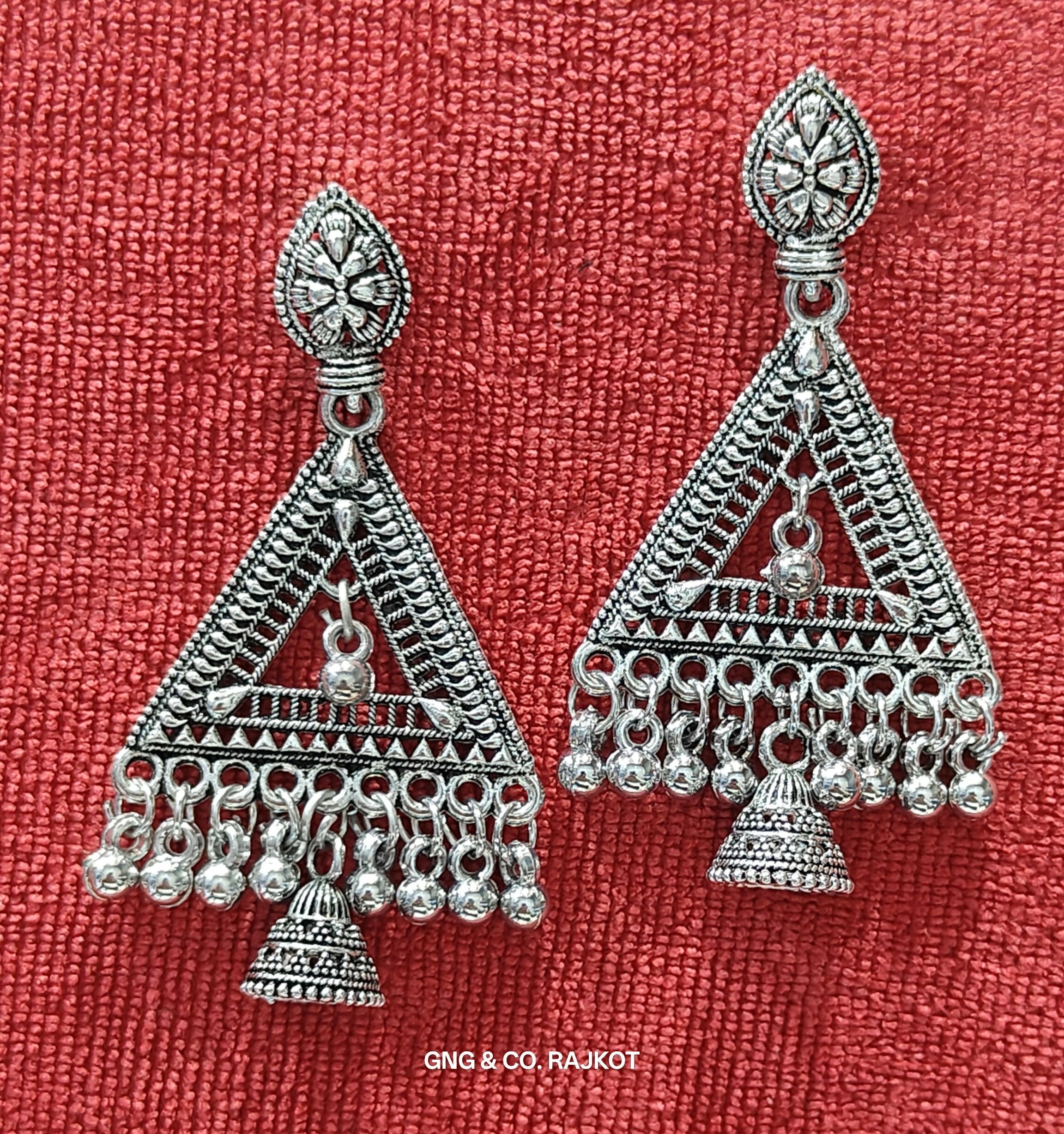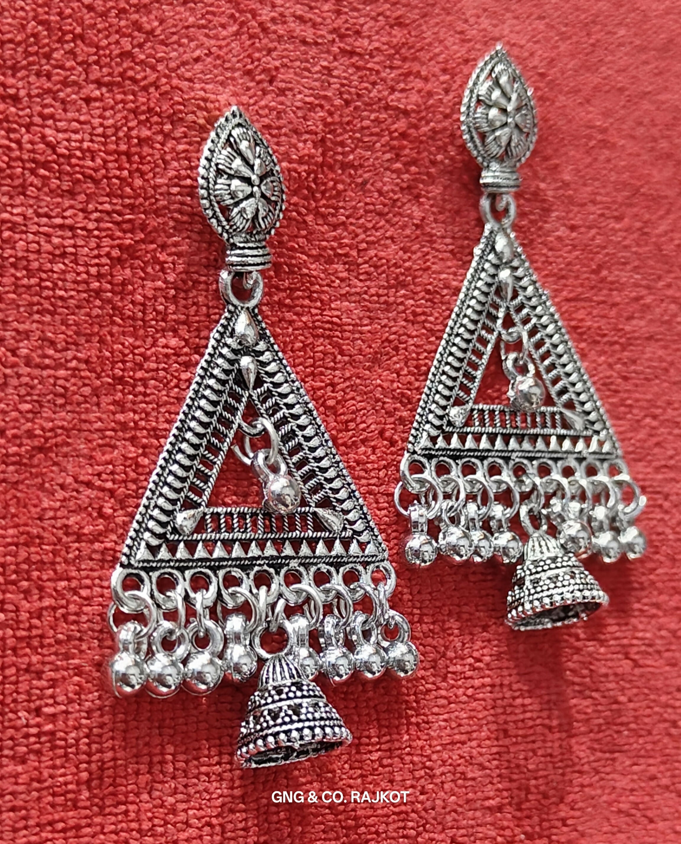 Add timeless charm to your collection with these handcrafted silver jhumka earrings, designed with a perfect blend of traditional elegance and modern grace. Featuring a beautifully carved top and a classic dome-shaped jhumka, these earrings reflect fine craftsmanship. The antique silver polish adds a vintage appeal, making them ideal for festive occasions, weddings, or ethnic celebrations. Lightweight and comfortable to wear, these jhumkas are a must-have for lovers of classic Indian jewelry.