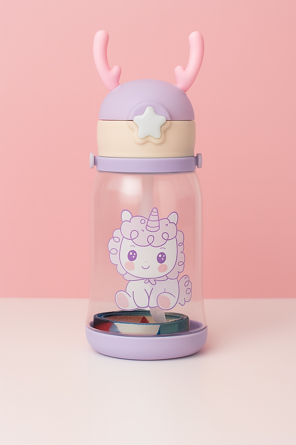 unicorn kids water bottle, BPA-free toddler bottle, cute cartoon water bottle, pastel purple bottle for girls, kids bottle with straw and strap, antler lid sipper, leakproof kids bottle, school water bottle for girls, baby drinking bottle, gift for toddler girls