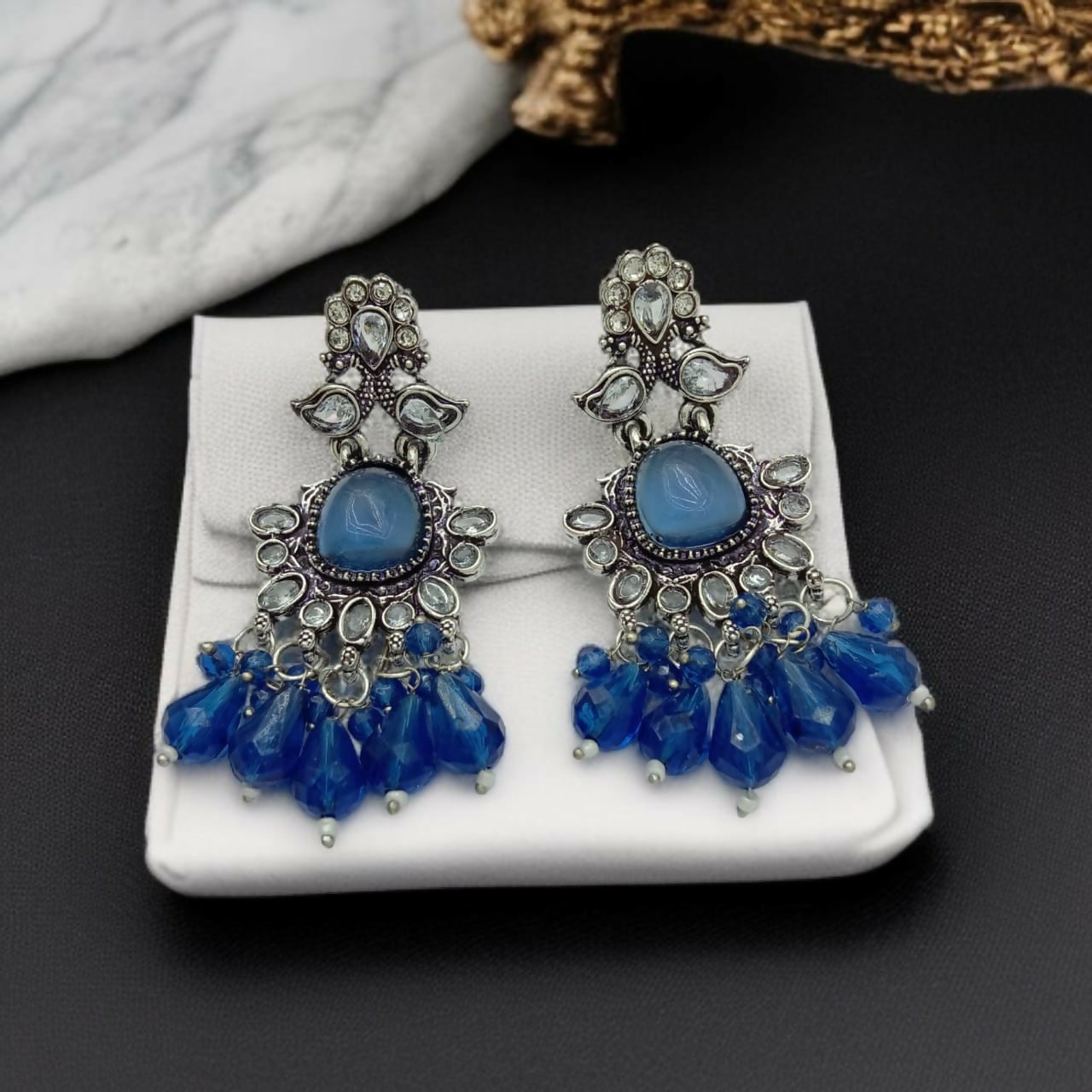 Royal Sapphire Oxidized German Silver Earrings