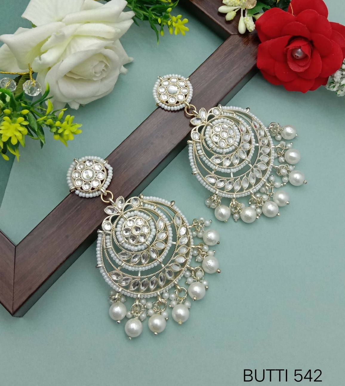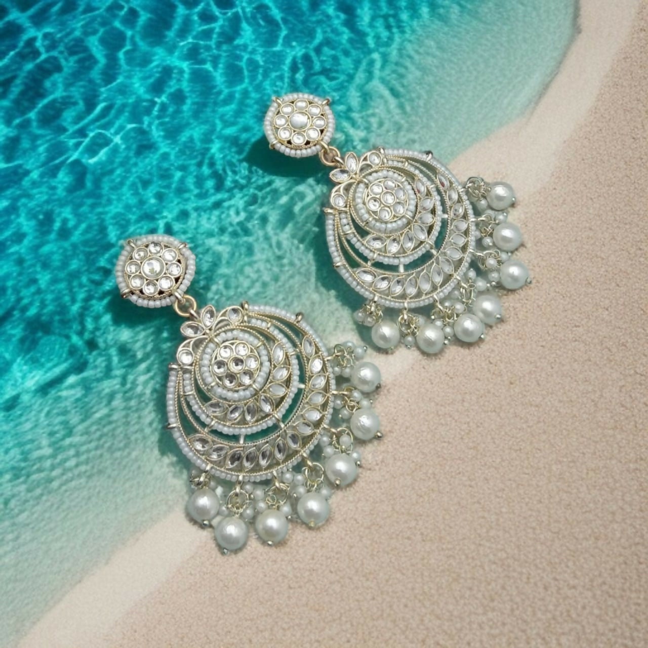 Traditional Gold-Toned Chandbali Earrings with Kundan Stones and Pearl Drops