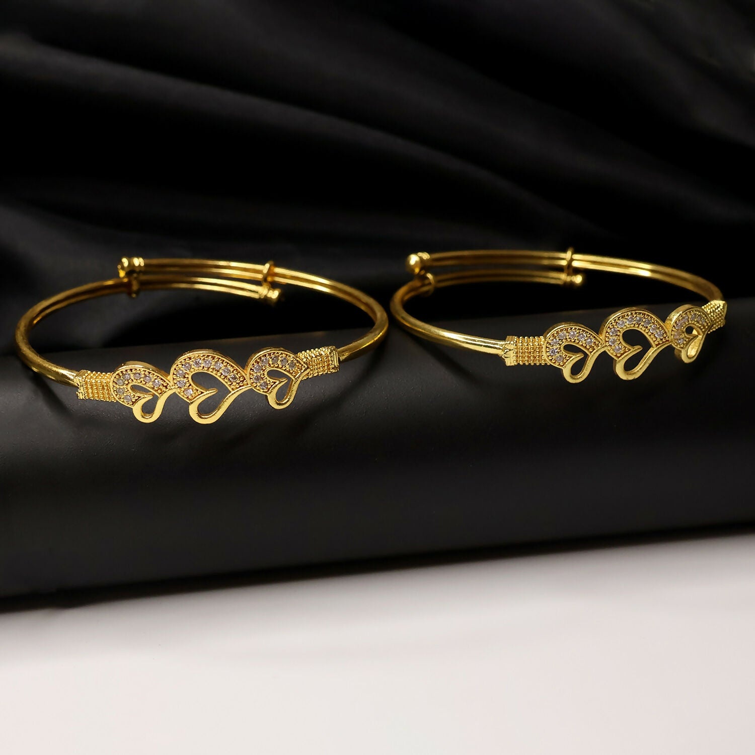 Heart Bangles With Sparking Stone Accents