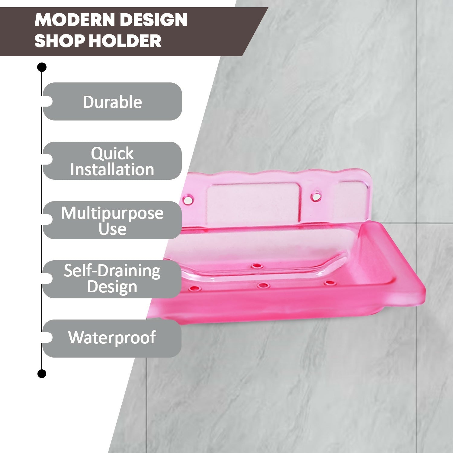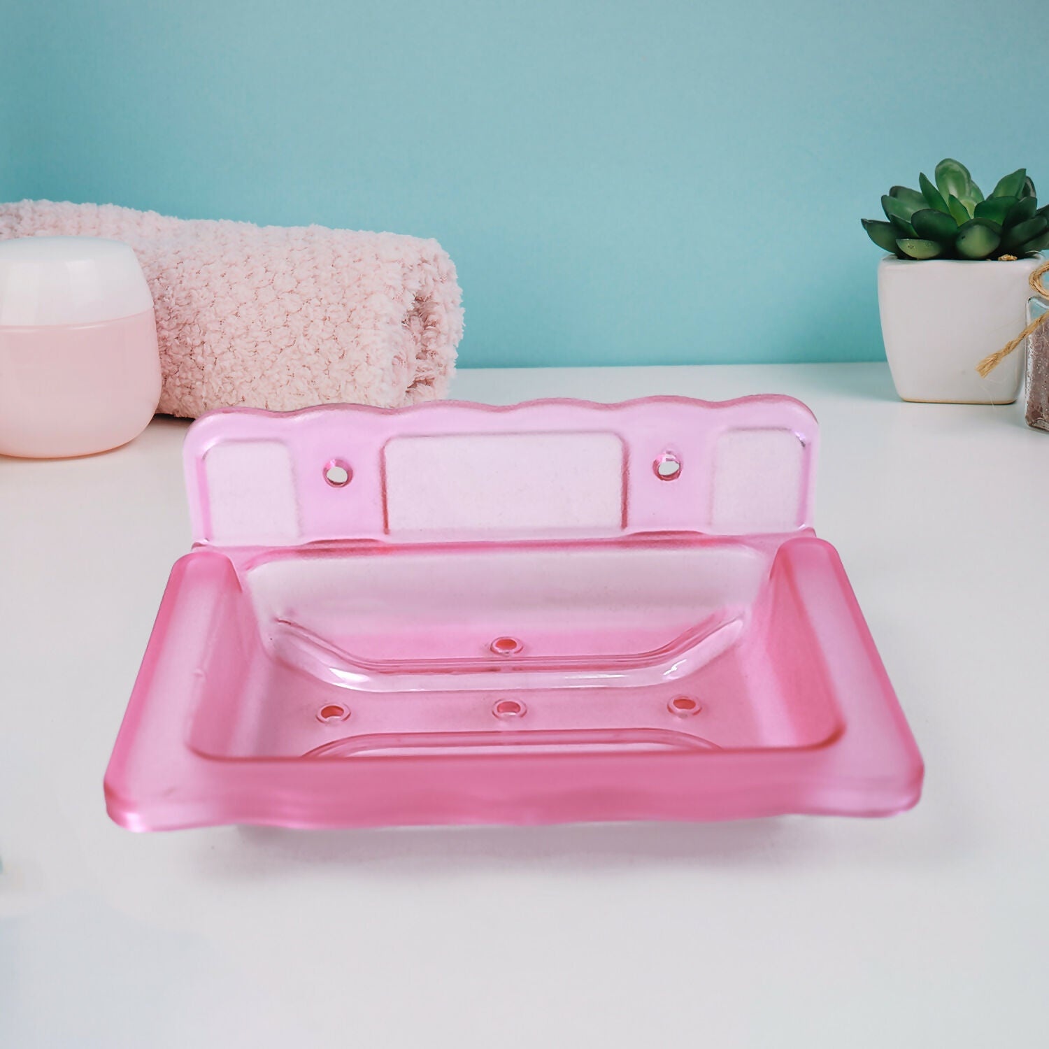 Wall-Mounted Plastic Soap Dish Holder with Drainage Holes – Transparent Pink Bathroom Soap Tray