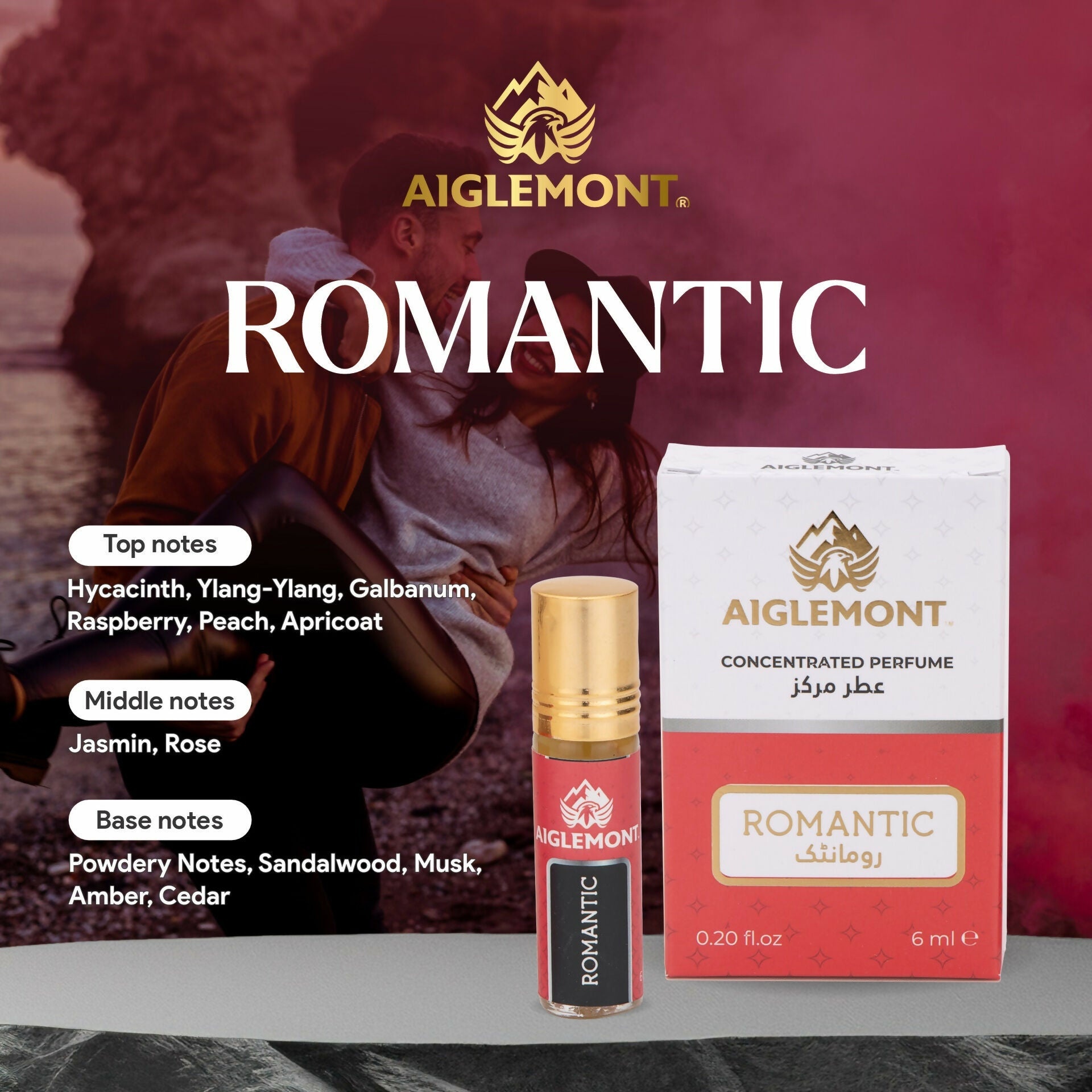 Aiglemont's Romantic, 6ml Roll-on, Alcohol free, Long Lasting Attar