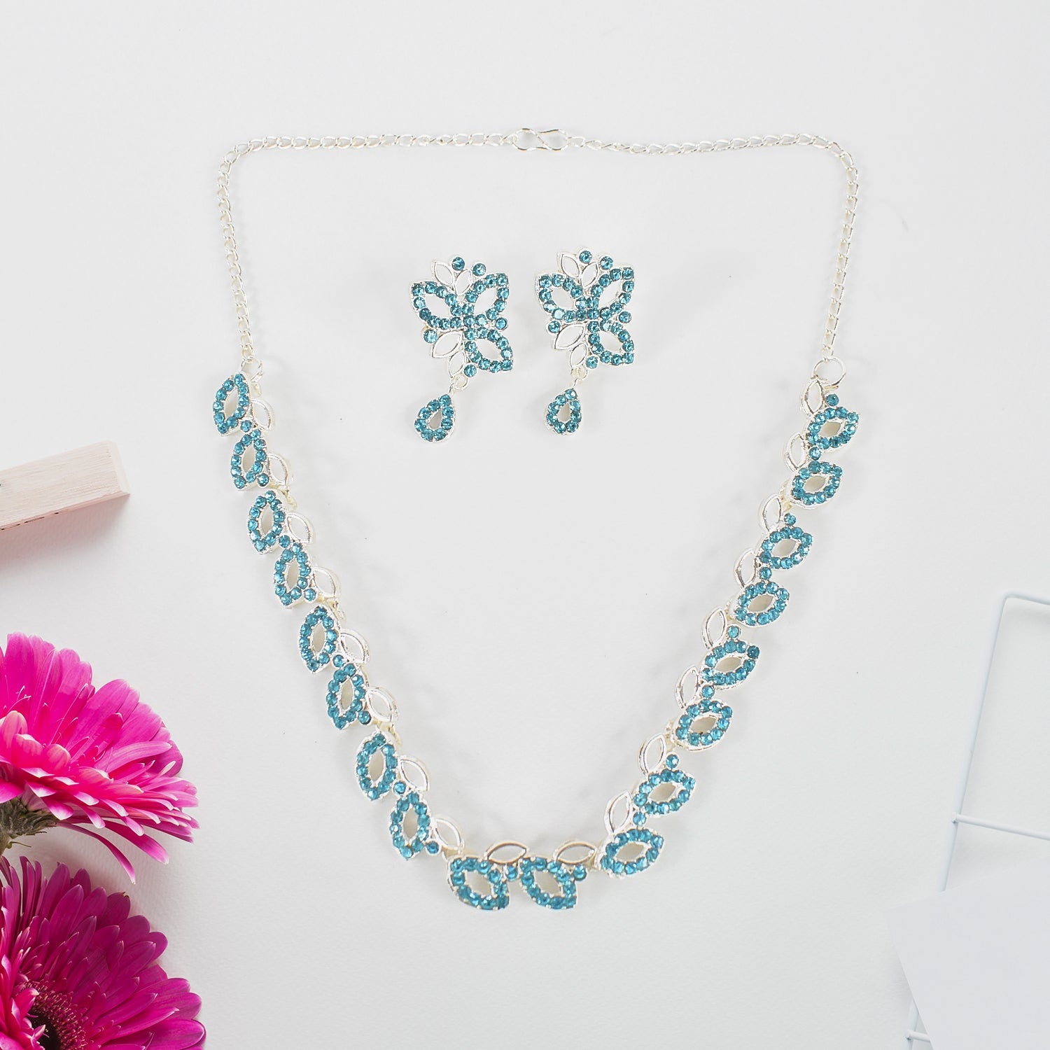 • What You Get:- 1 N Rhodium-Plated American Diamond Studded Floral & Paisley Shaped Necklace With 2 N (1 pair) Earrings Jewellery Set.