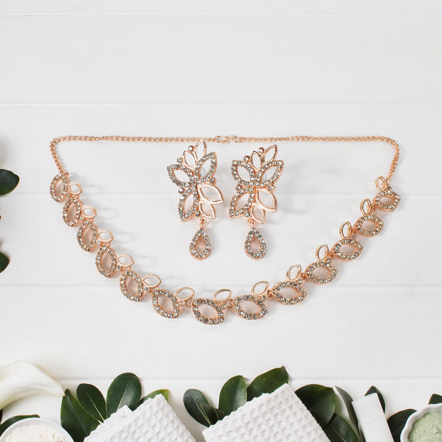 American Diamond Studded Floral Shaped Necklace With Earrings
