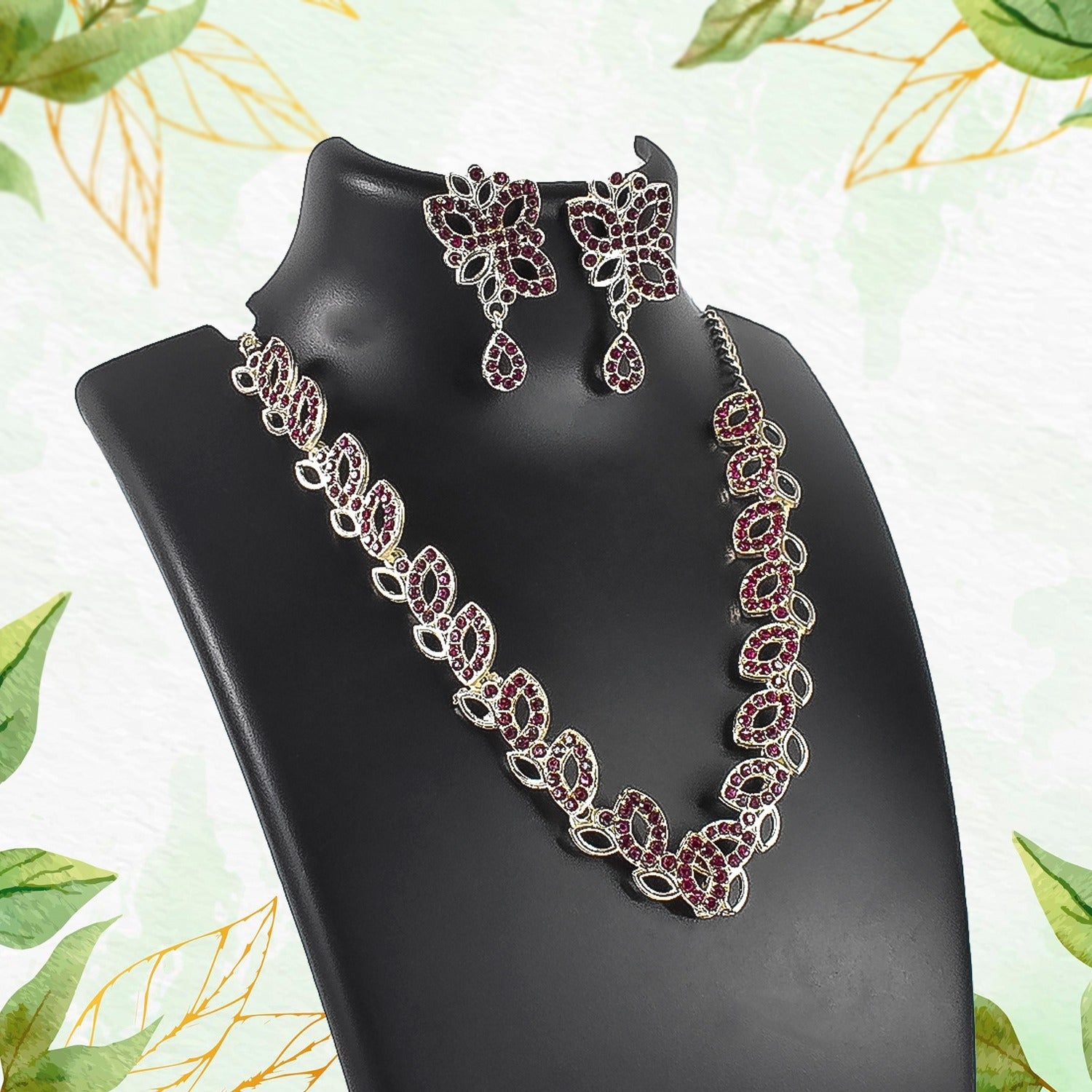 • What You Get:- 1 N Rhodium-Plated American Diamond Studded Floral & Paisley Shaped Necklace With 2 N (1 pair) Earrings Jewellery Set.