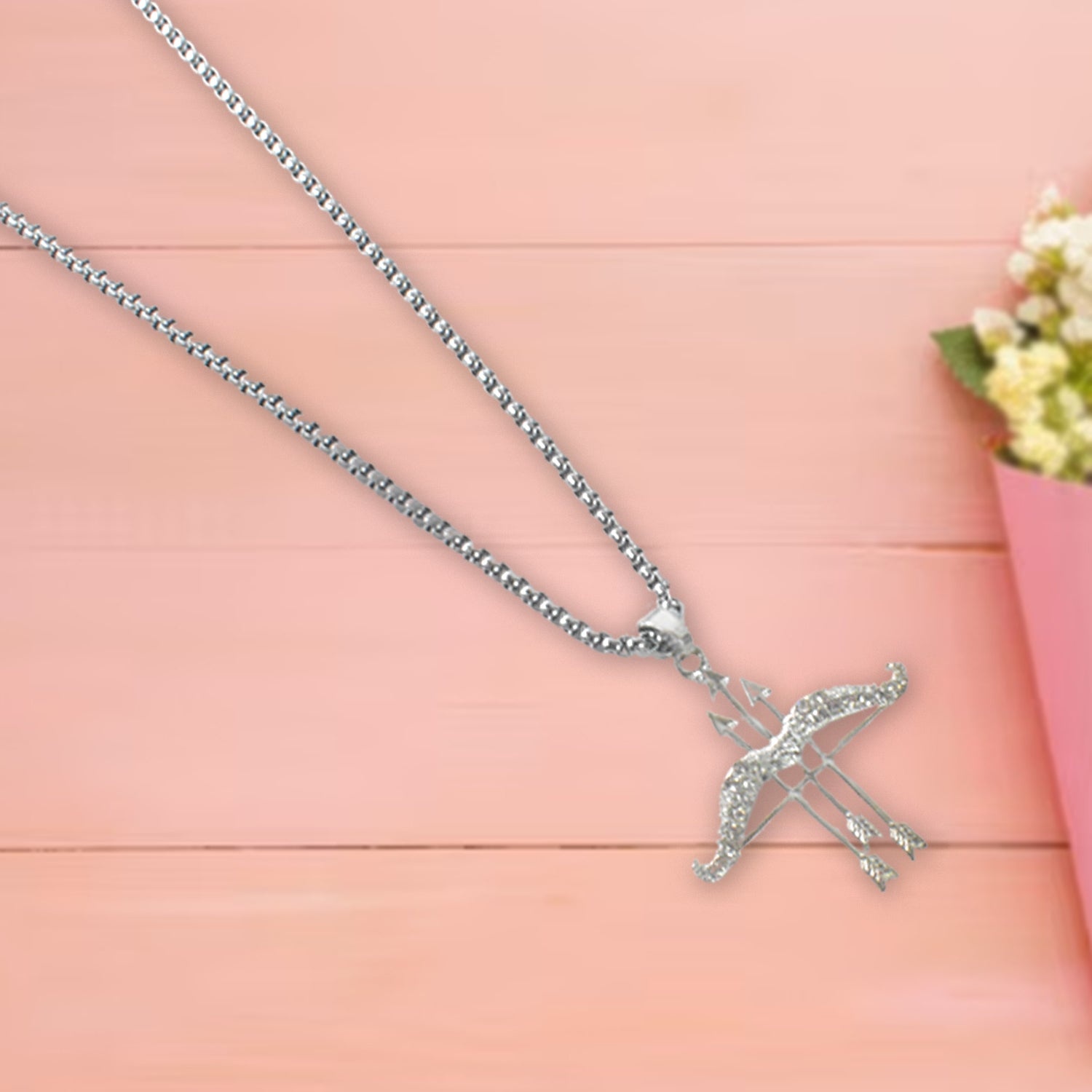 • Silver Lord Khatu Shyam Teen Baan Locket Pendant Chain Necklace Religious Jewellery For Men Women