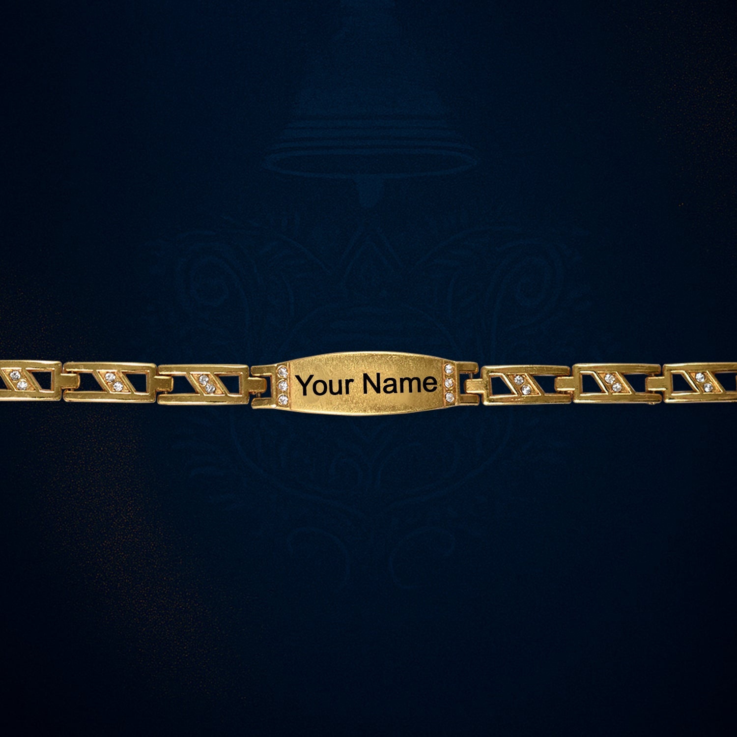 Make your style stand out with this custom name bracelet, featuring a beautifully designed ethnic band and a gold-plated nameplate. Personalize it with any name or meaningful word to create a unique accessory that speaks to your personality. Its traditional pattern adds a cultural touch, making it a great gift or everyday style piece.