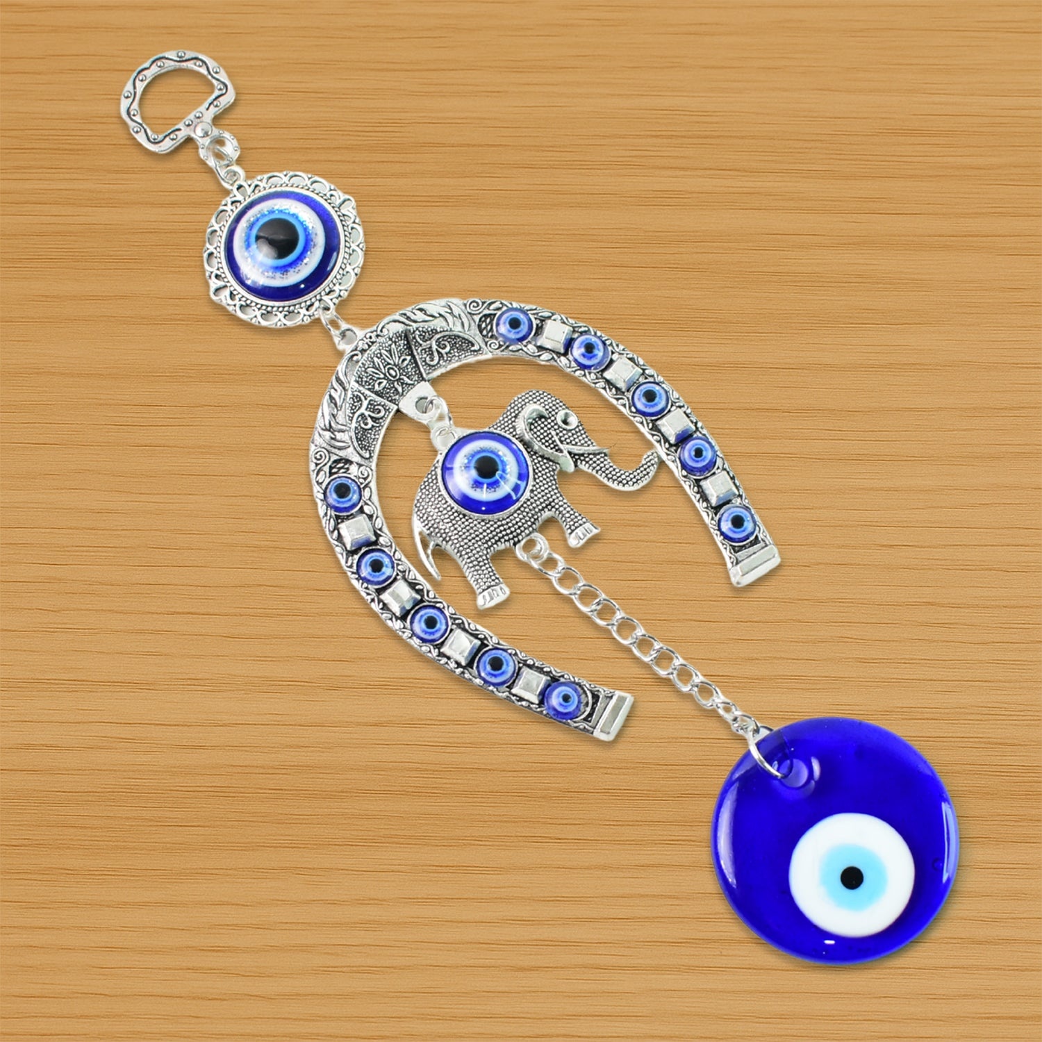 Decorative Evil Eye Hanging with Elephant and Horseshoe Motif, Wind Chime (1 Pc)