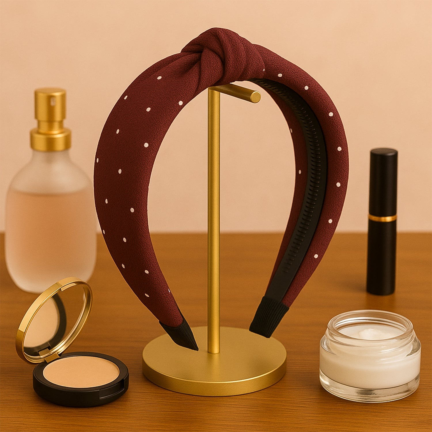 Women's Polka Dot Fabric Knot Hairband – Stylish & Comfortable Non-Slip Headband for Girls and Women, Soft Padded Hair Accessory for Daily Wear and Outings (1 Pc)