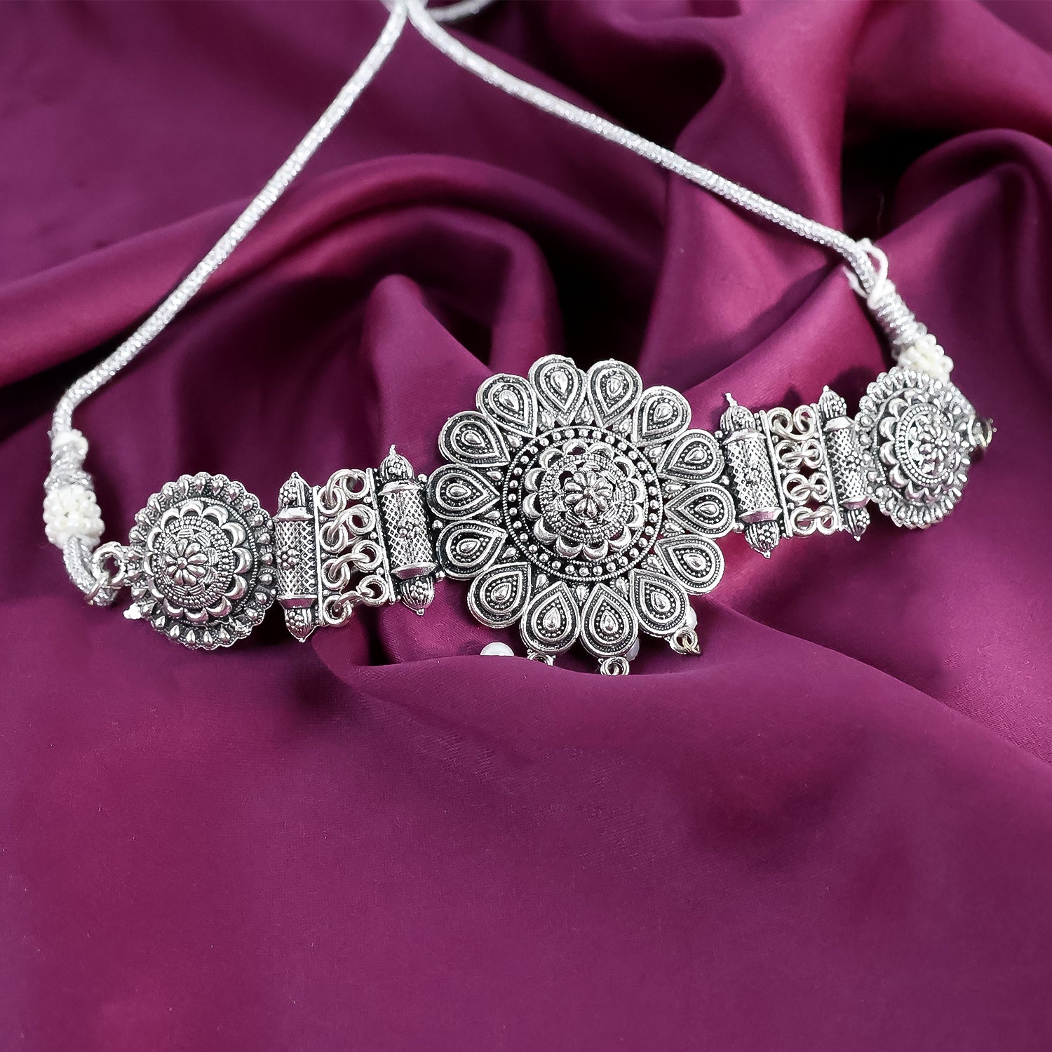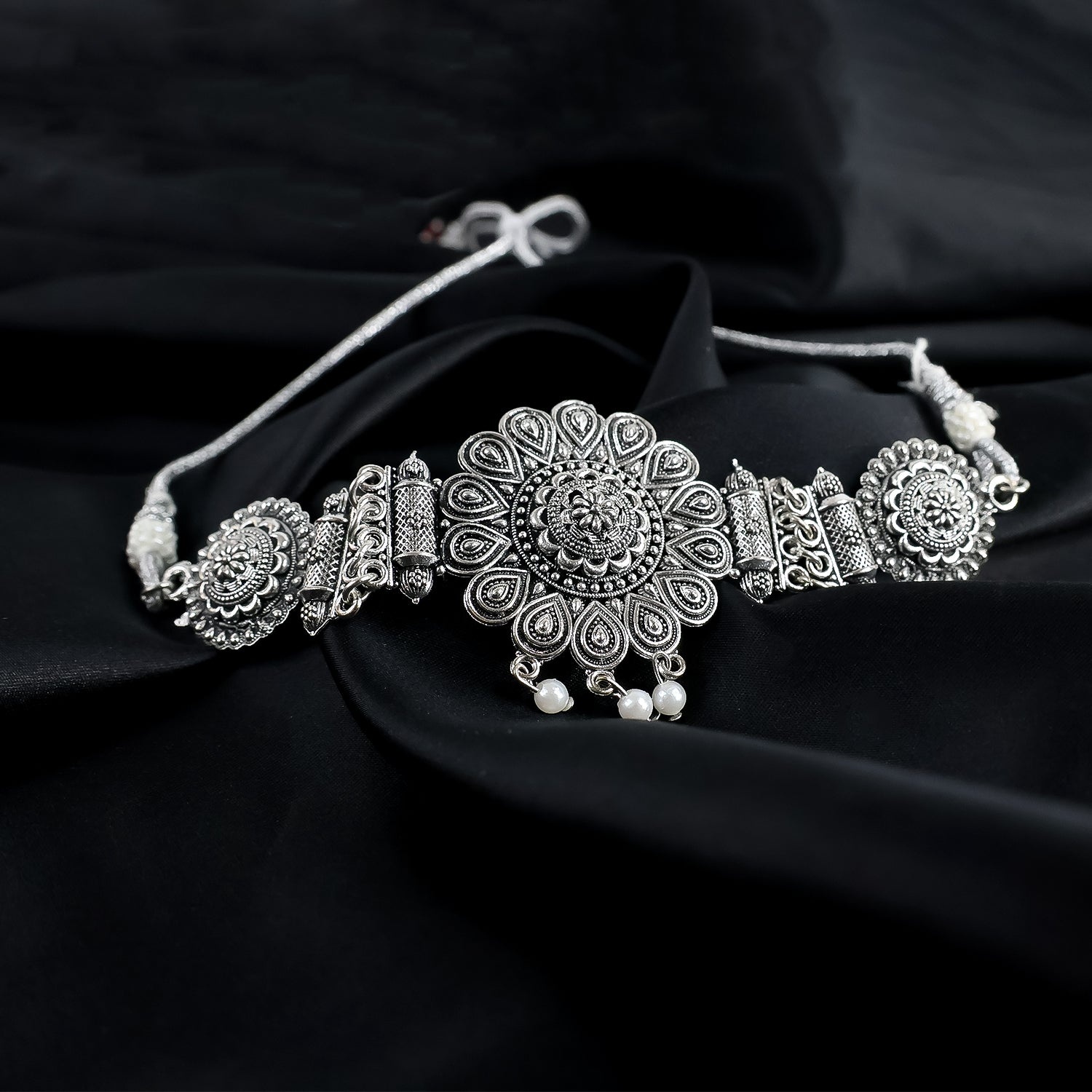 Oxidised Silver Rodium Choker with Jhumki Earrings for Women and Girls