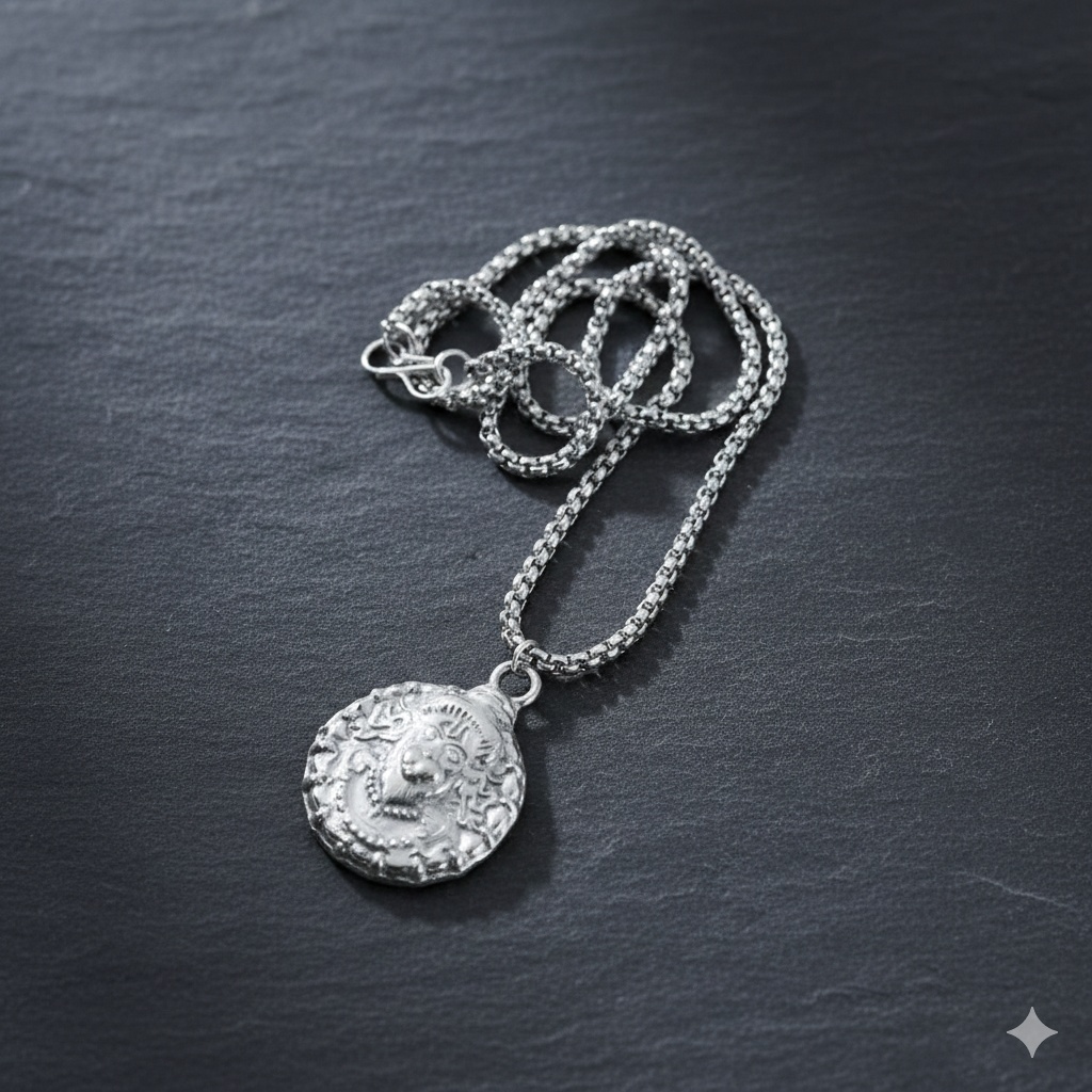 Style Hindu Lord Bajrangbali Hanuman Face Locket With Chain idol Monkey God of Devotion Locket Silver Zinc And Metal Pendant Necklace Chain For Men And Women (1 Pc)