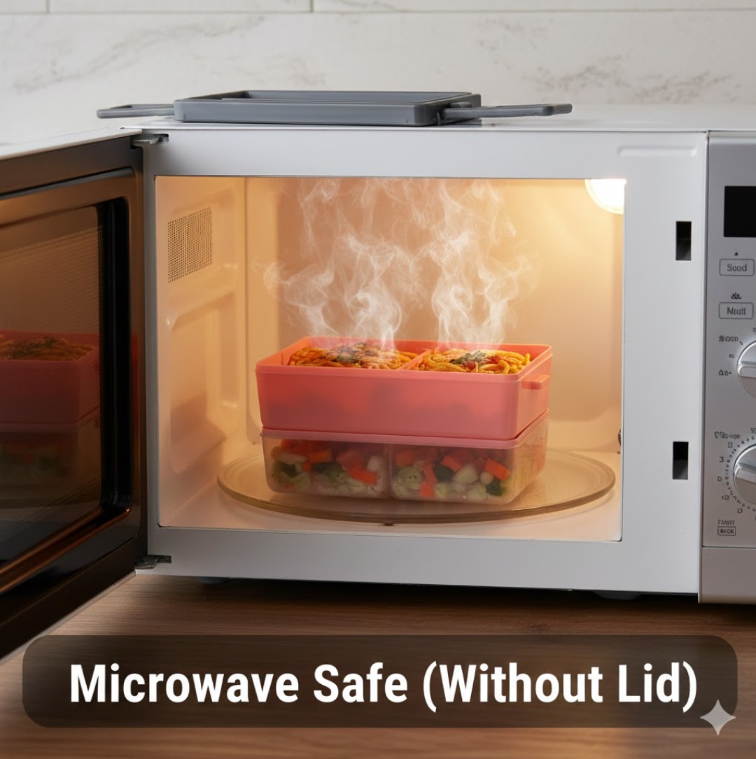 Leak Proof 3 Compartment Lunch Box for Office Men and Lunch Box for Kids, Microwave Safe Lunch Boxes, Reusable, Freezer Safe Food Containers with Spoon & Fork for Adults and Kids PP Food Grade Plastic Leak Proof 2 Layer Boxes, for Adults Kids Office Microwave Dishwasher Safe Available (1 Pc)