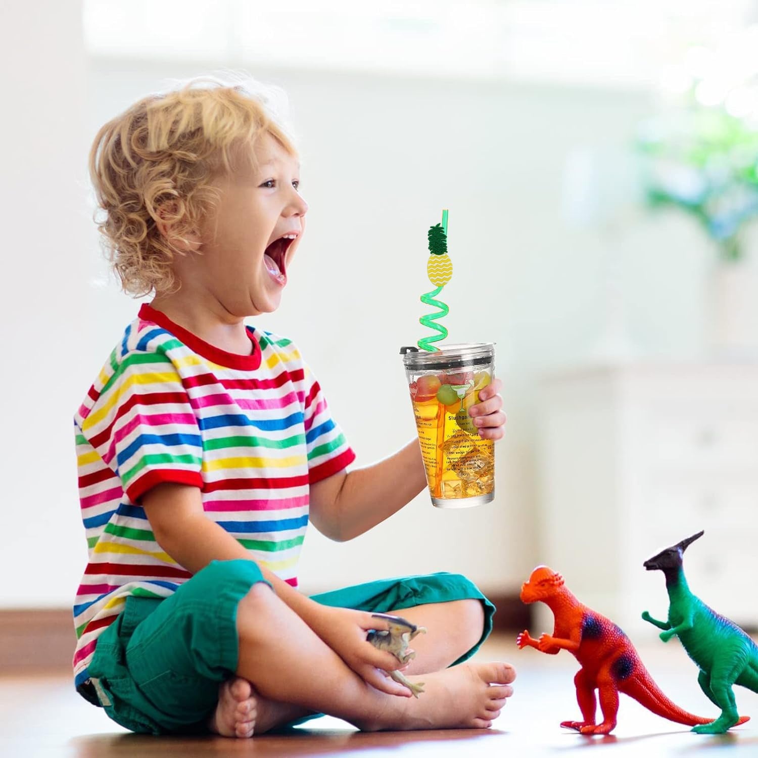 Children's Plastic Straws, Reusable Plastic Straws, Straws for Cocktail, Children's Birthday Party, Christmas Drinking Straws with Cartoon Decoration for Kids Birthday Party Favors or other summer celebration (12 pcs Set / Mix Design)