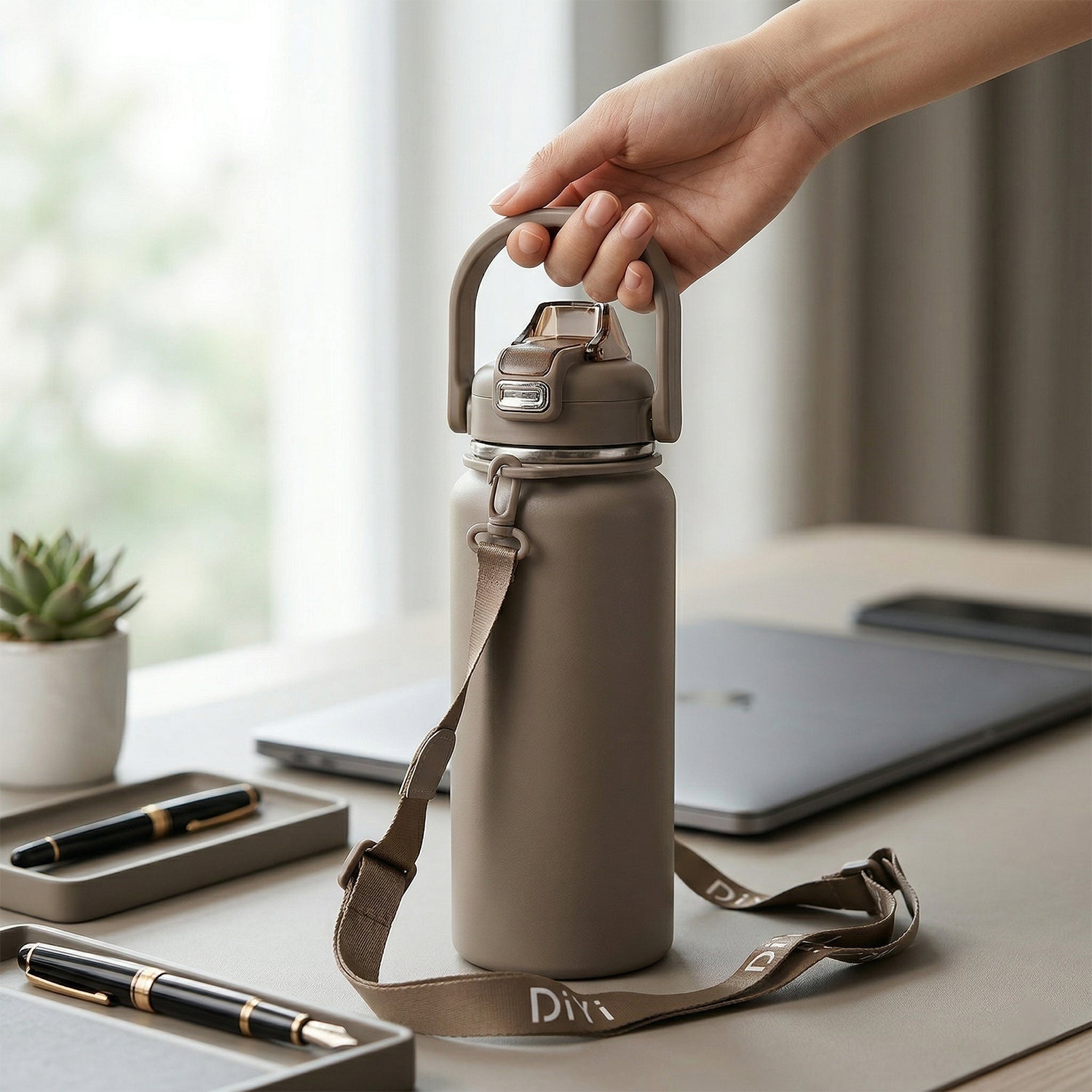 Vacuum Insulation Technology: This water bottle features advanced vacuum insulation technology, which effectively keeps your drinks hot or cold for hours on end. Whether you're sipping piping hot coffee during a morning commute or enjoying refreshing cold water on a summer hike, you can trust this bottle to maintain your desired temperature without any external influences.